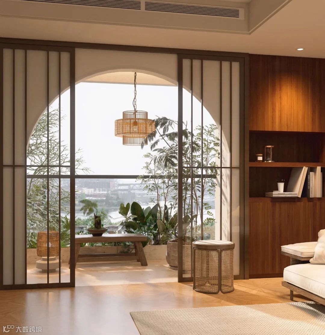 比如客厅与阳台之间的衔接处,也不再局限于玻璃推拉门设计,而是越来越追求产品差异化,在开放式设计的道路上越走越远。
