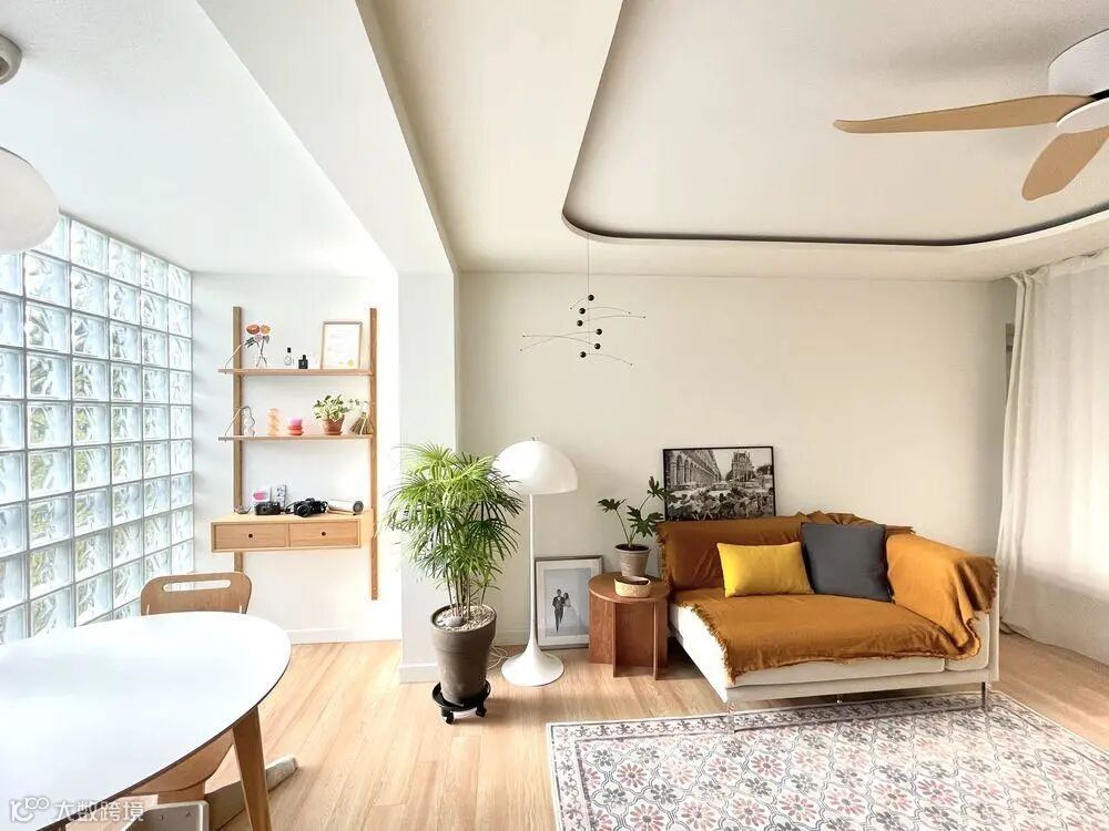 看到她家的第一眼就被吸引了,玻璃砖有多美,在她家就得到了充分体现。把阳台打通之后扩入室内,增加整体空间的采光面积,看起来会更加通透。原本阳台侧边的窗户通通改装成玻璃砖,在阳光的照射下,呈射出炫丽的光线,颜值非常高。