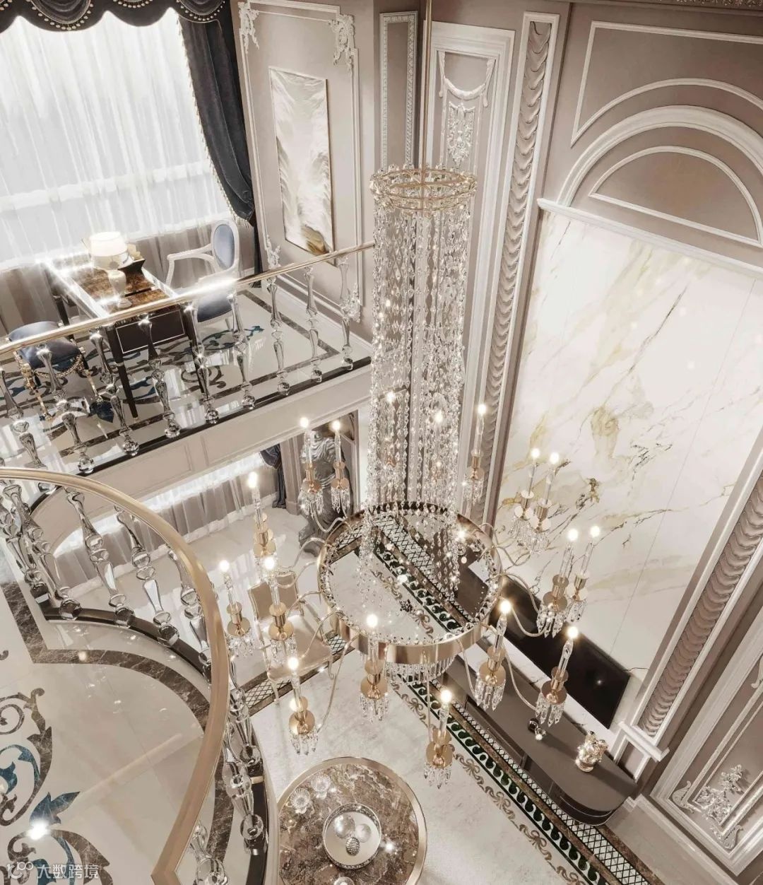 水晶灯是法式风格设计中醉常用的装饰之一。复杂的洛可可风格尽显艺术典雅。
