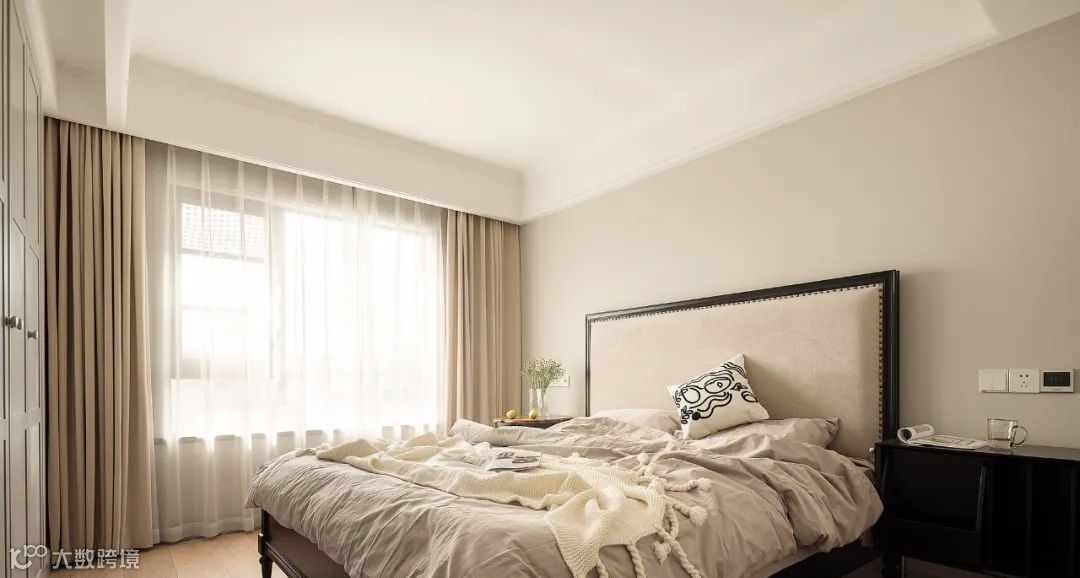 ▲ 卧室做了充足的收纳区,床头背景护墙与收纳柜和谐统一,自带高级感