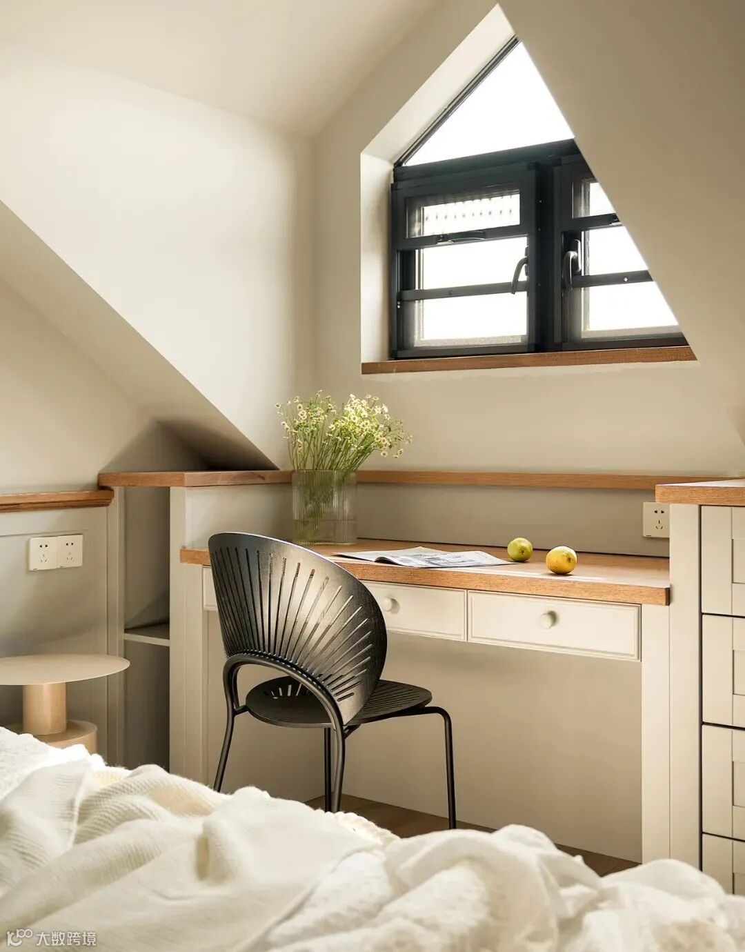 ▲ 沿窗下方打造梳妆台,左侧是开放格,右侧是抽屉柜