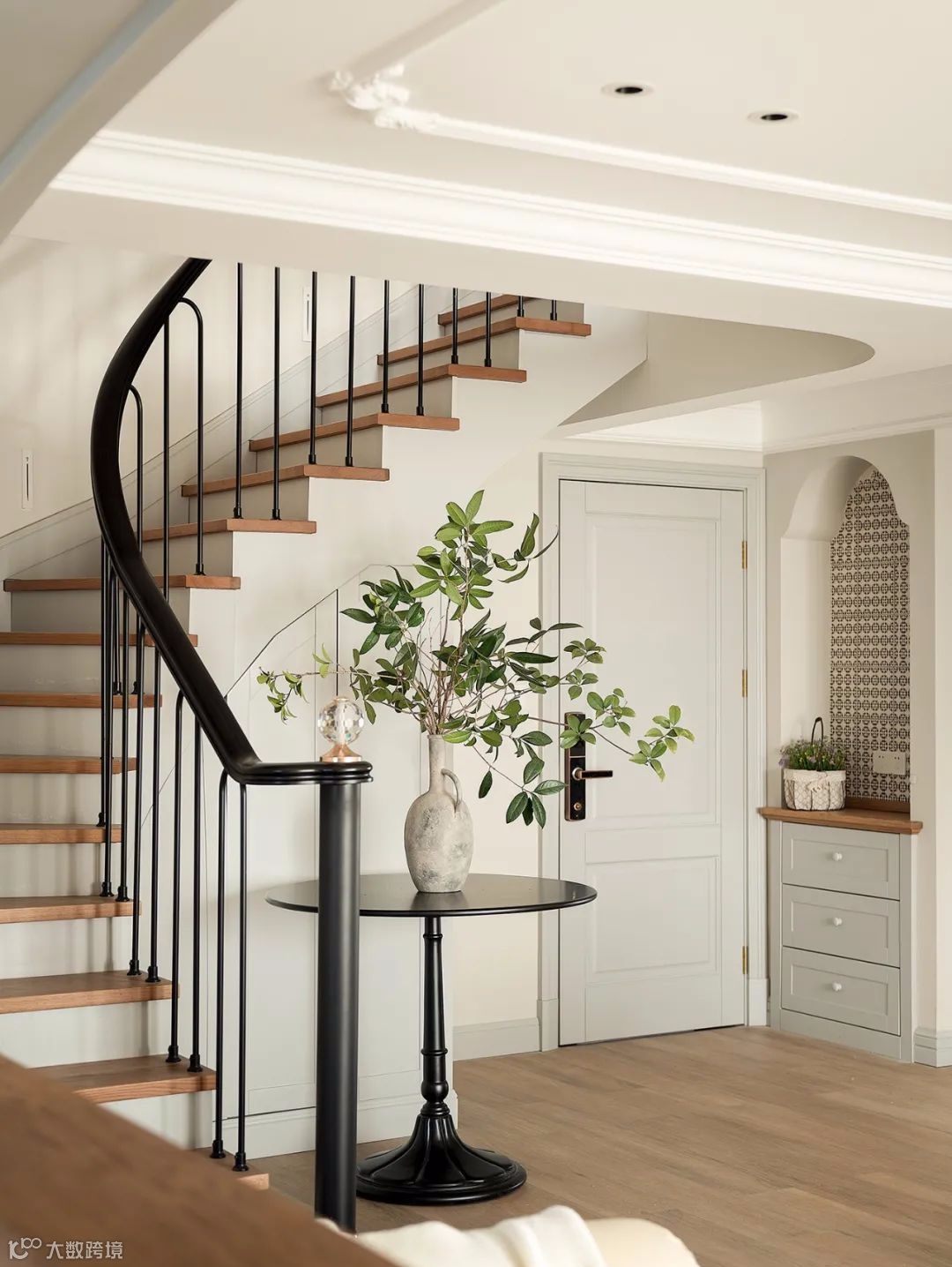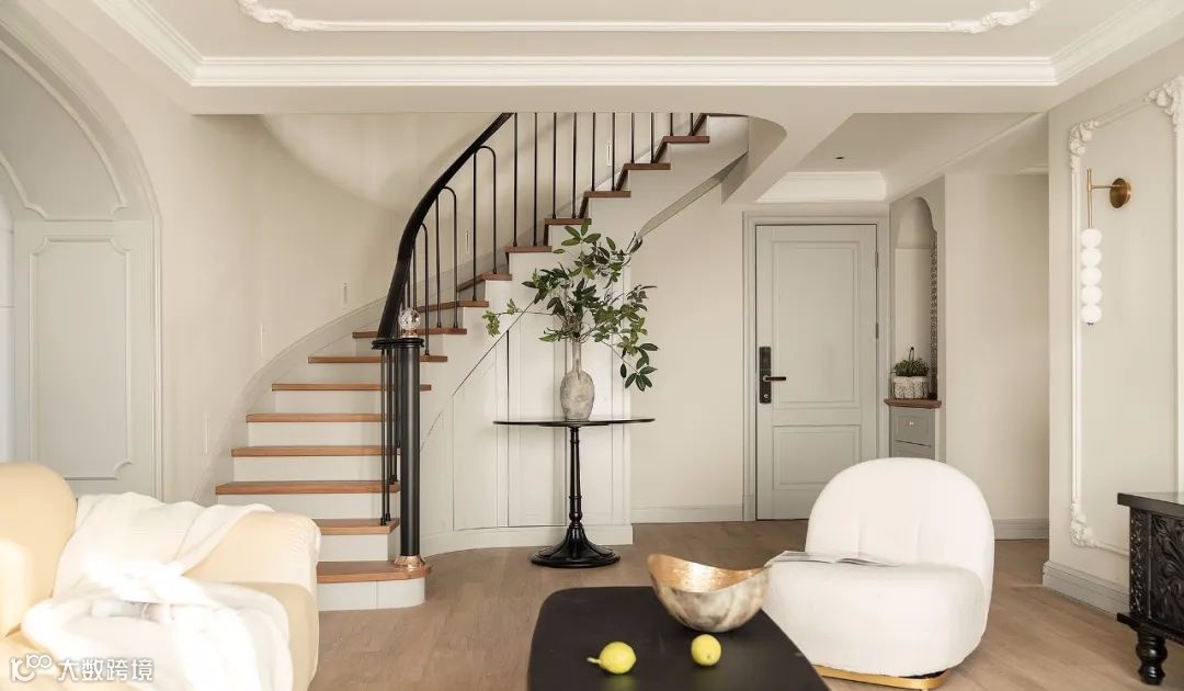 ▲ 构造优美的弧形楼梯是家中的一道别开生面的风景线