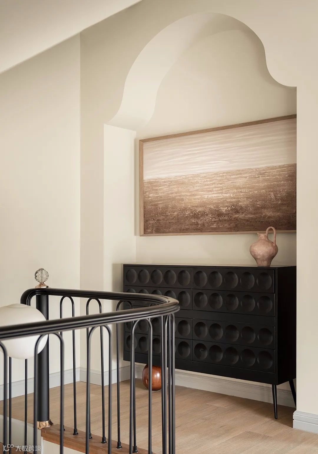 ▲ 布置成品边柜和装饰画丰富过道