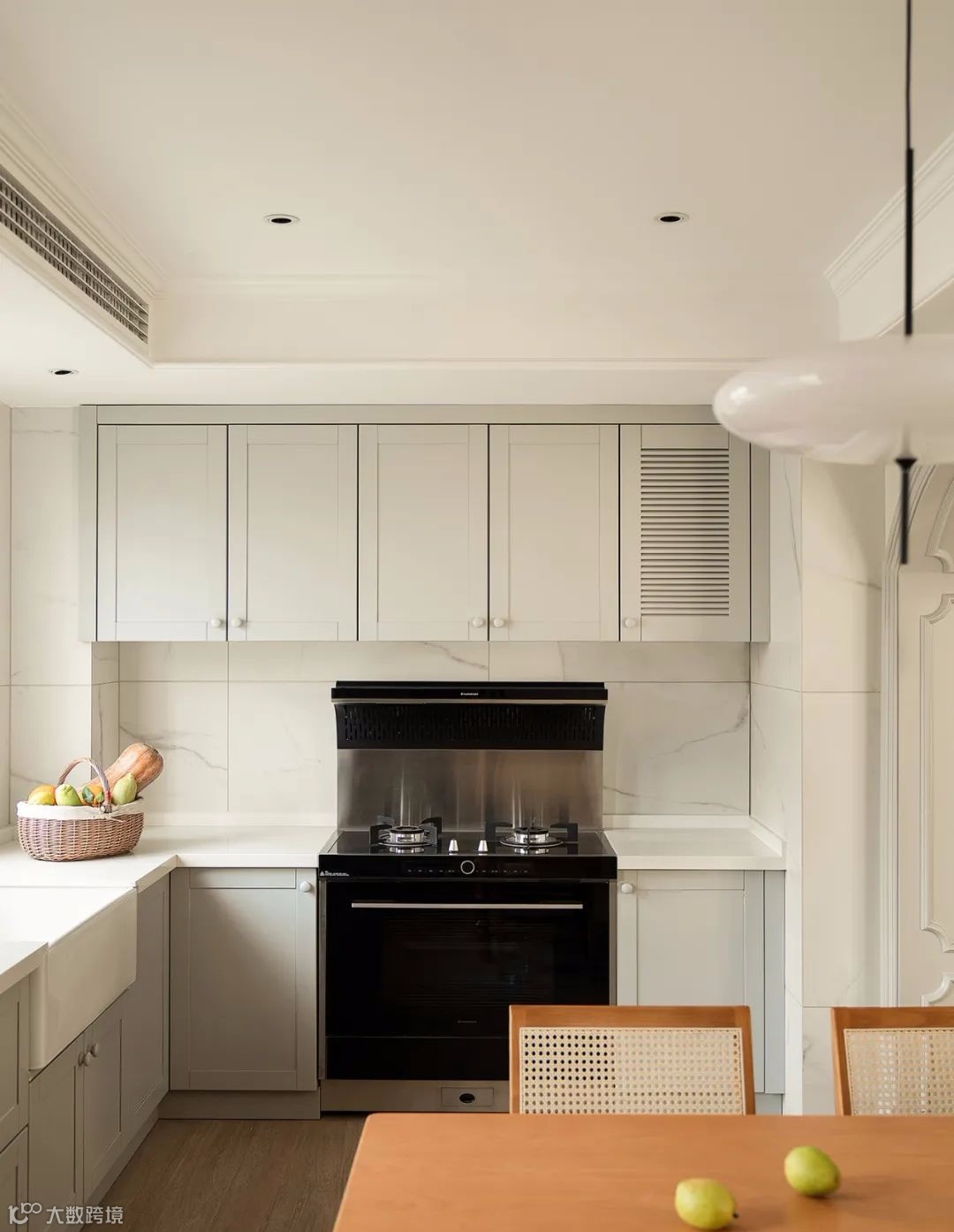 ▲ 开放式厨房,浅色系的橱柜与墙砖结合,好看又亮堂