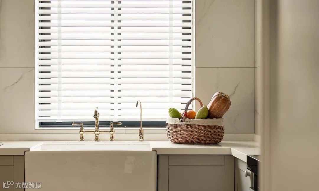 ▲ 黄铜水龙头搭配陶瓷水槽,成为厨房最独特的装饰