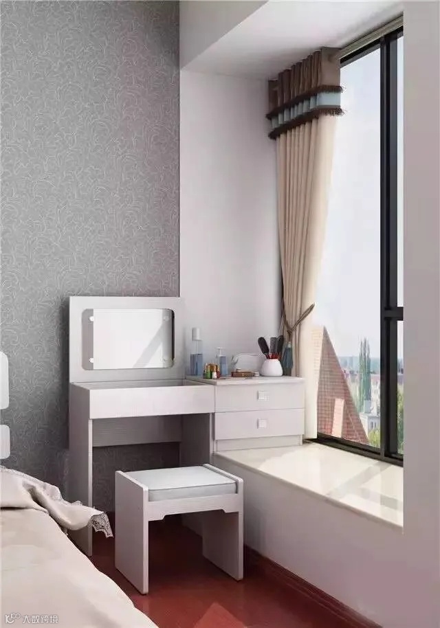 对于那些小户型的的卧室来说,由于空间面积有限,因此我们在对卧室飘窗设计设计时,最好在下方增加些储物空间,这样能大大增加我们的收纳空间,同时我们还可以将飘窗部分墙面设置成储物架,可以在上面摆放些书籍。