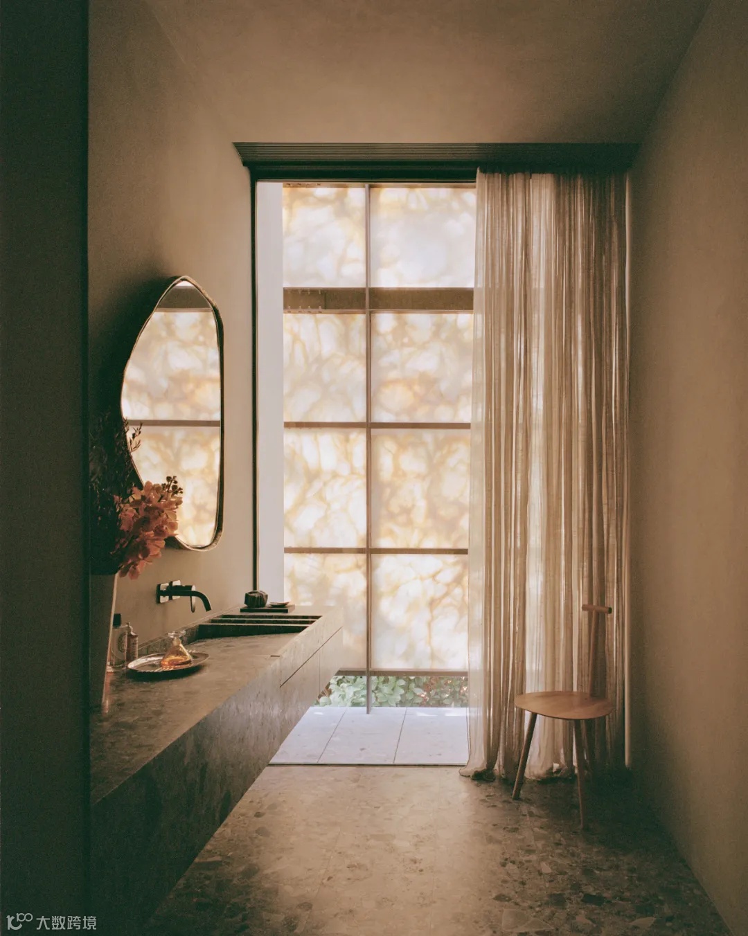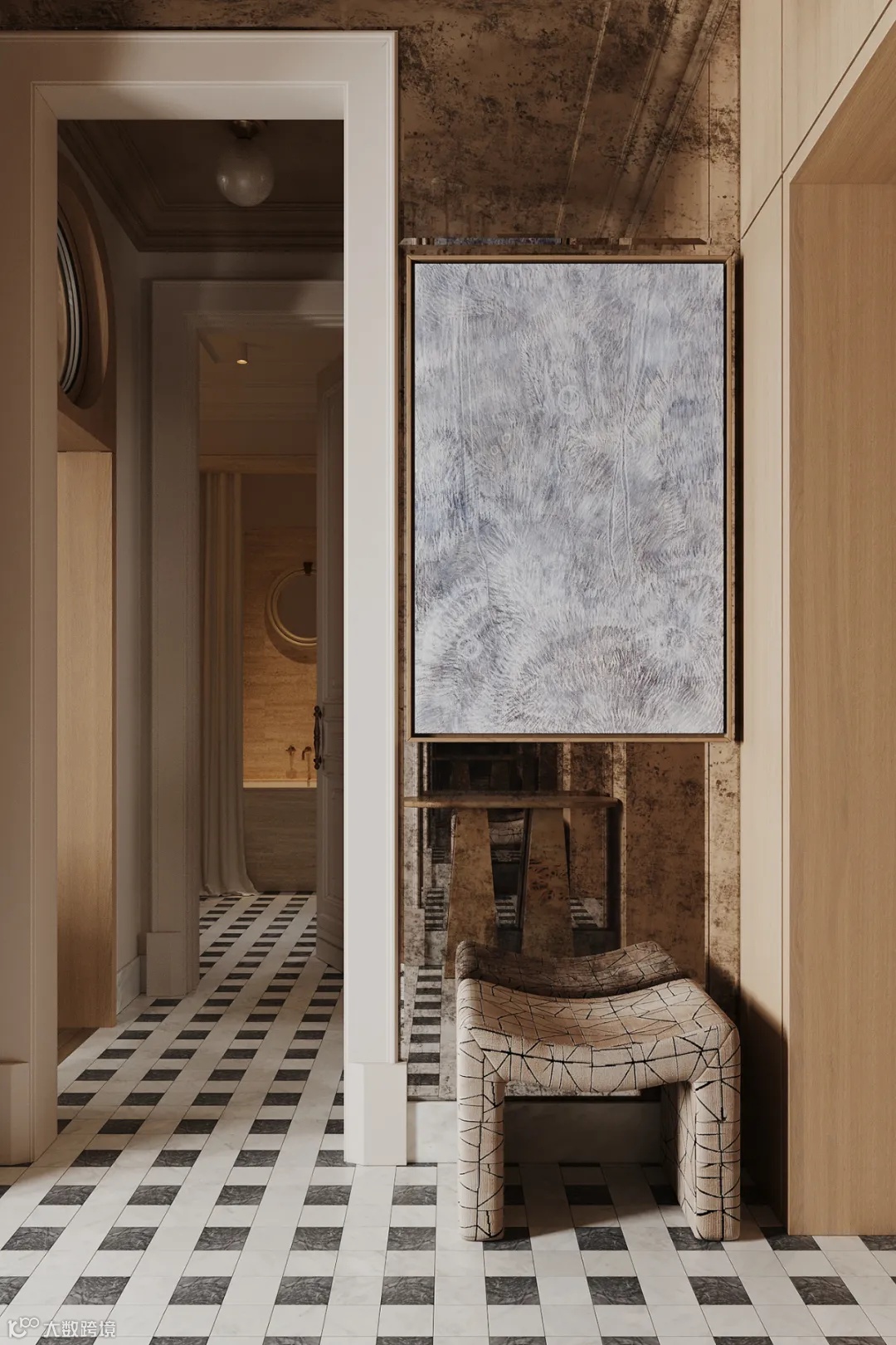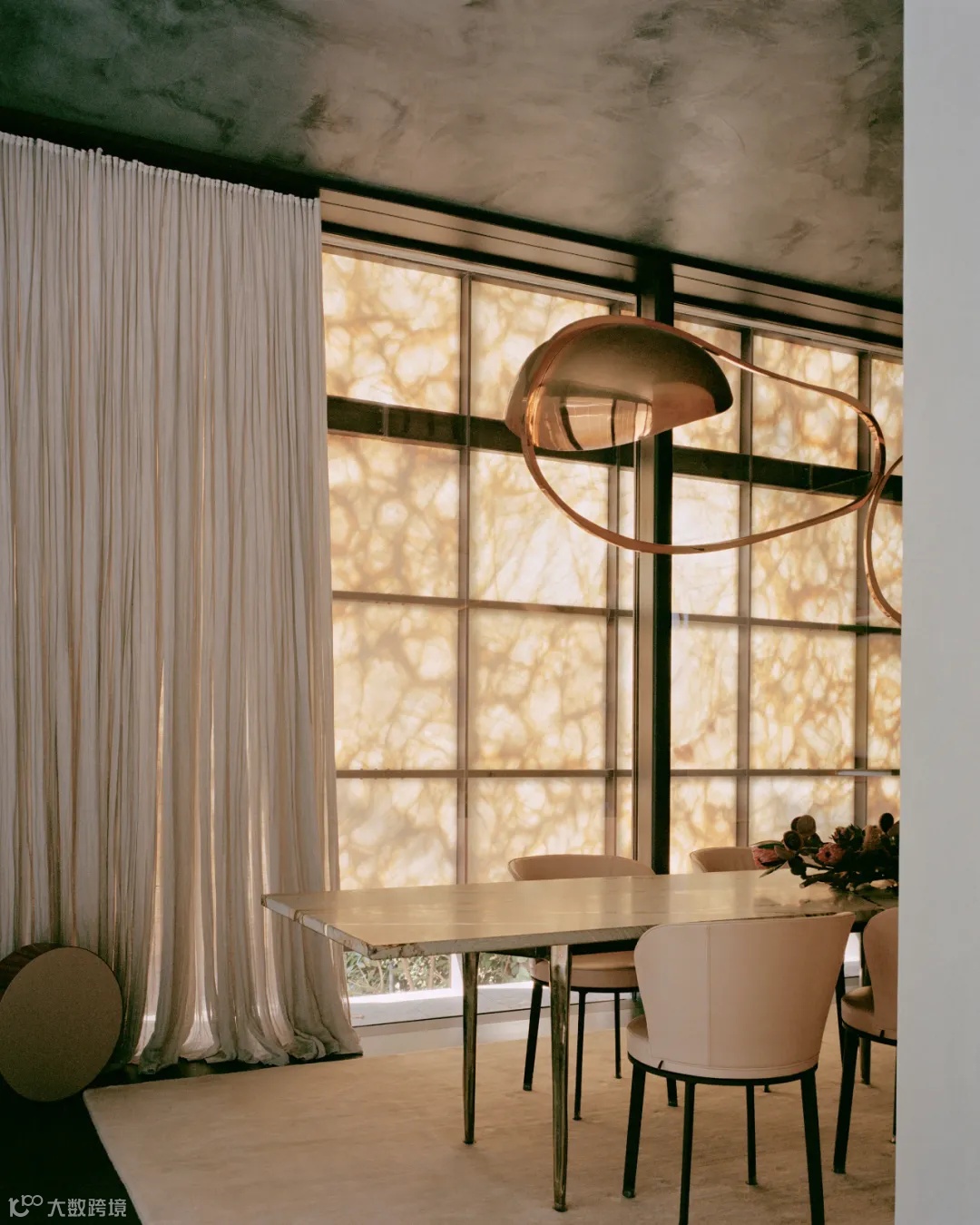 关联到室内中,这种方形格子创意而出的美感,让空间明朗中隐透着朦胧氤氲,搭配平静素雅的微侘寂,显得非常的温馨典雅,展现出一种复古设计别样的美感。