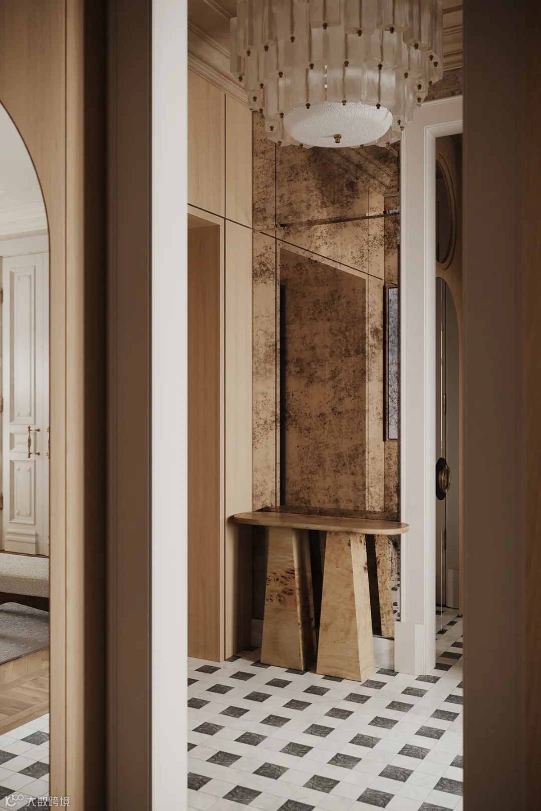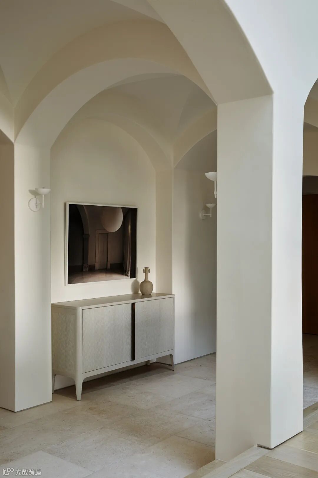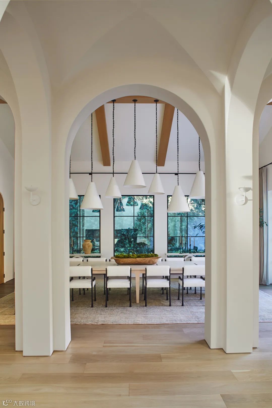 从外立面开始,就可以看出设计的独特,白色的拱形门框艺术地串联起整个客厅区域,搭配上整体优雅复古的软装配饰,既起到了功能区划分的作用,也丰富了空间层次感,让家沉浸出岁月与时尚皆美的艺术感。