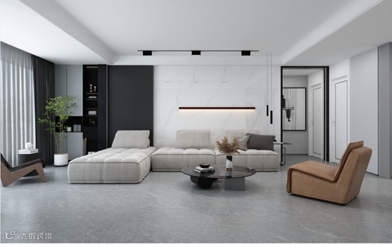 这个公式是根据黄金配色比例7:2:1延展出来的,即1类主色+n类辅助色与点缀色。其中辅助色和点缀色加起来不能超过3种,主色通常选黑白灰(无色系)或大地色系,这两种色系都是家居中百搭的“打底色”。