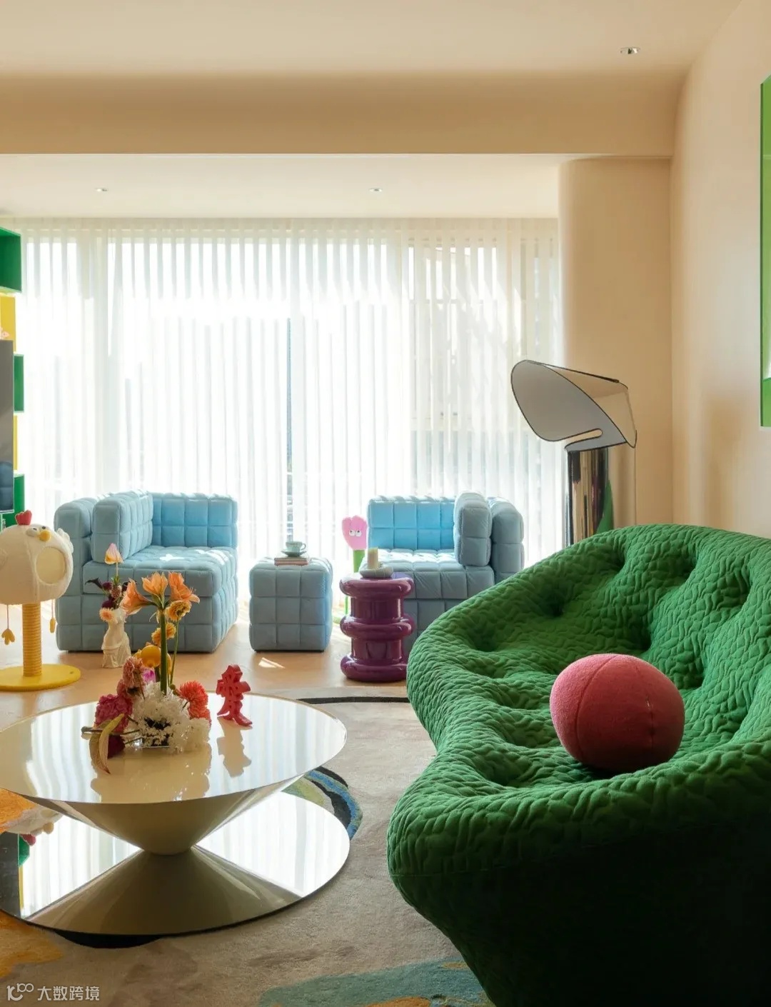 总的来说,多巴胺色彩家居以其明亮、鲜艳的色彩和积极向上的氛围,为我们的生活带来了更多的快乐和活力。
