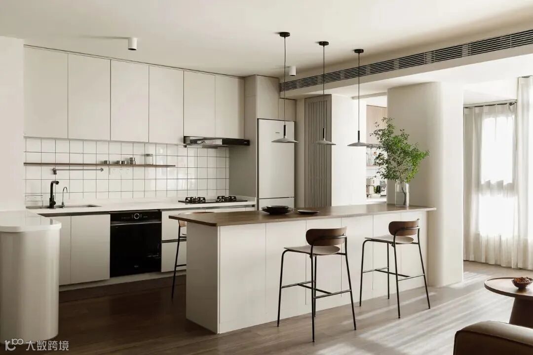 时尚简约的白色橱柜是百搭款,简洁明快,用于任何风格的厨房都不会出错,是绝大多数人的选择。