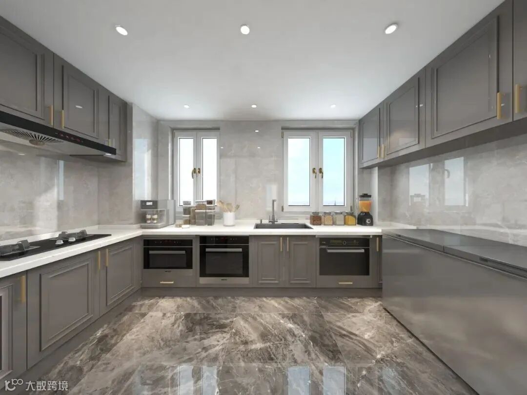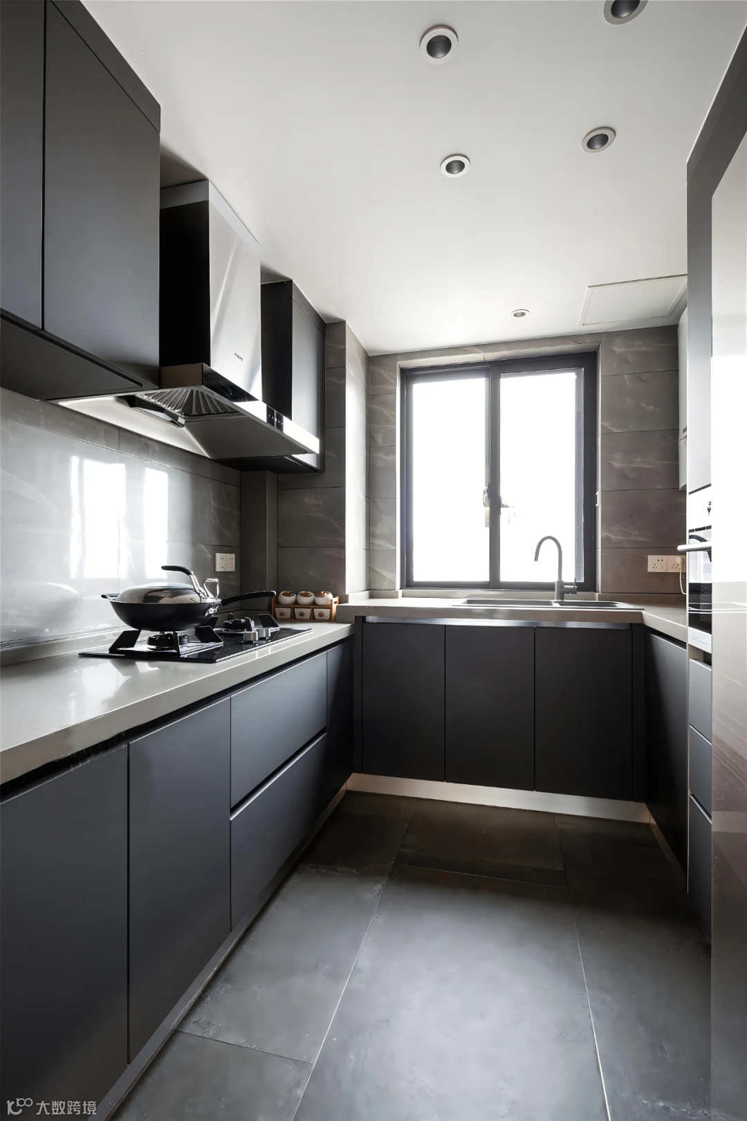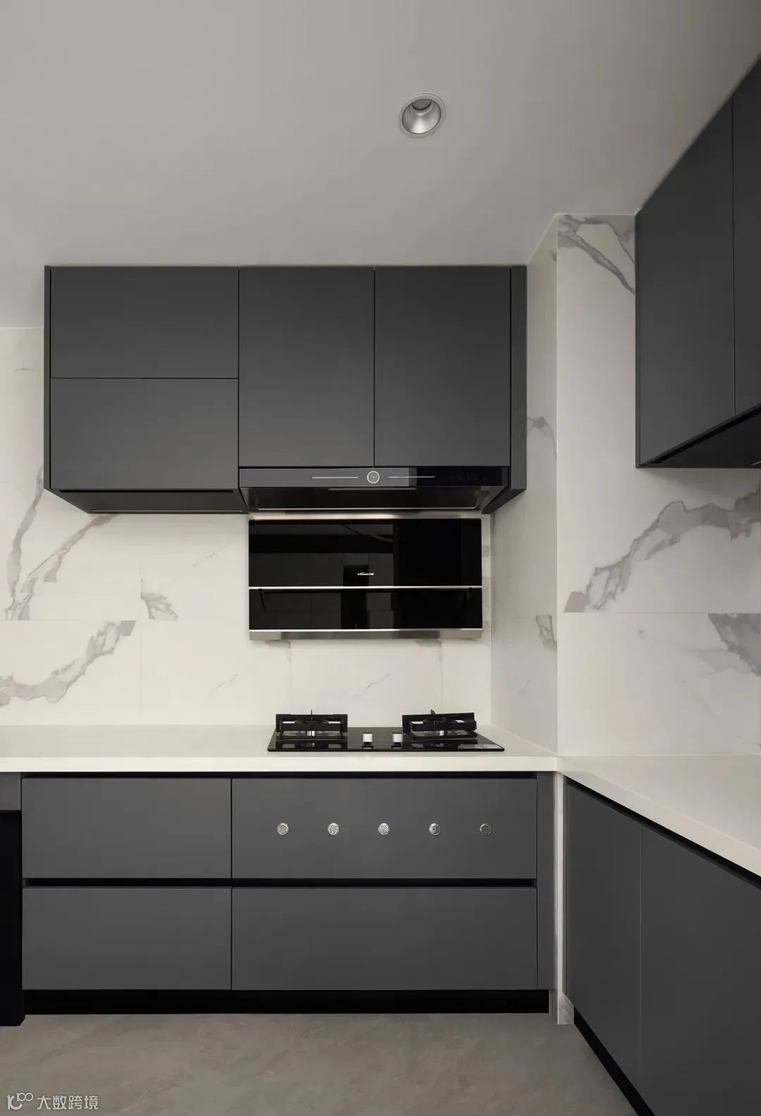 灰色橱柜质感高级,能让整个厨房高级别致起来,搭配小白砖更加好看,更加时尚。