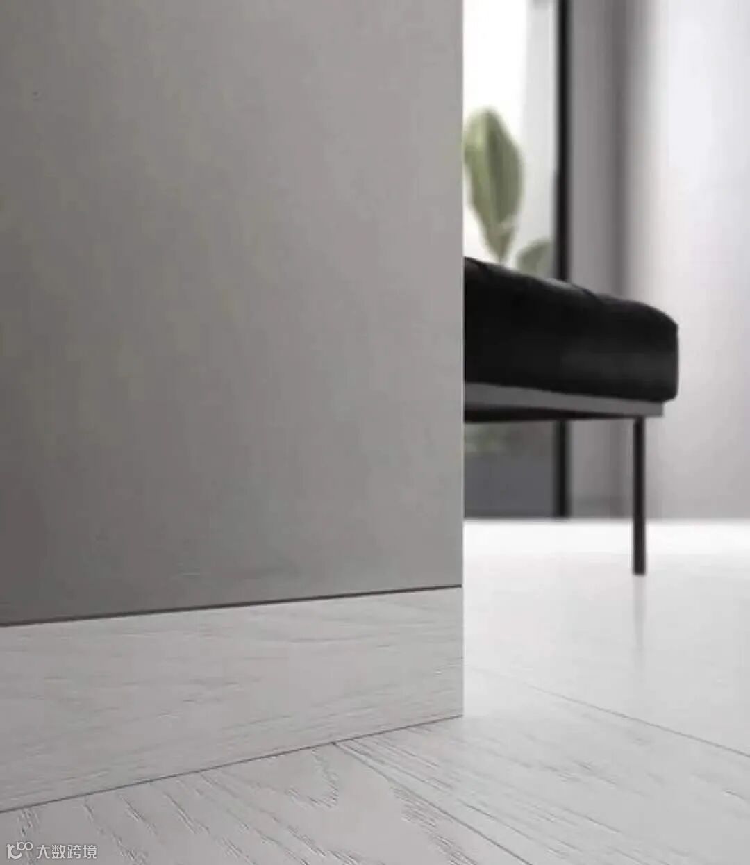 其实,想要达到让踢脚线“隐形”的效果,最简单的办法就是明装同色踢脚线,如与地面、墙面、门套同色、同种材质的踢脚线,就能最大化地降低其存在感。