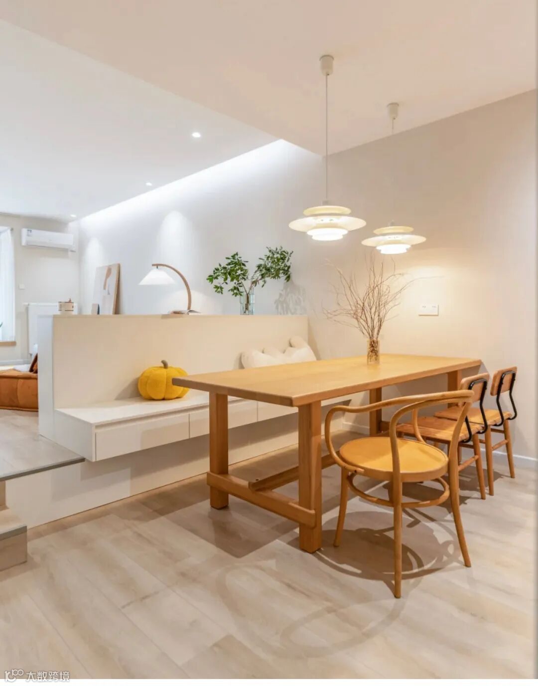 ②与地面同色:视觉上会拉低层高,不适合小户型或层高低的家庭。