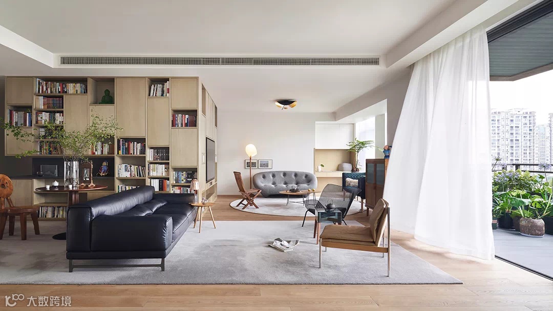 想要划分空间层次也不必如此生硬,大客厅可以在通铺基础上做半墙隔断,小户型可以用家具、地毯、地台来“代劳”,还能一物多用。