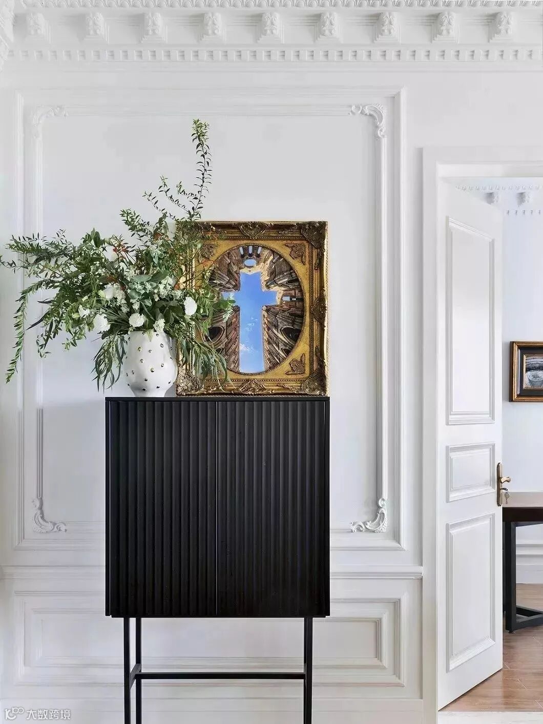 上下/左右拼色,想层次、造型更美观的可以选乳胶漆+石膏线,适合复古、法式、北欧、轻奢等风格。