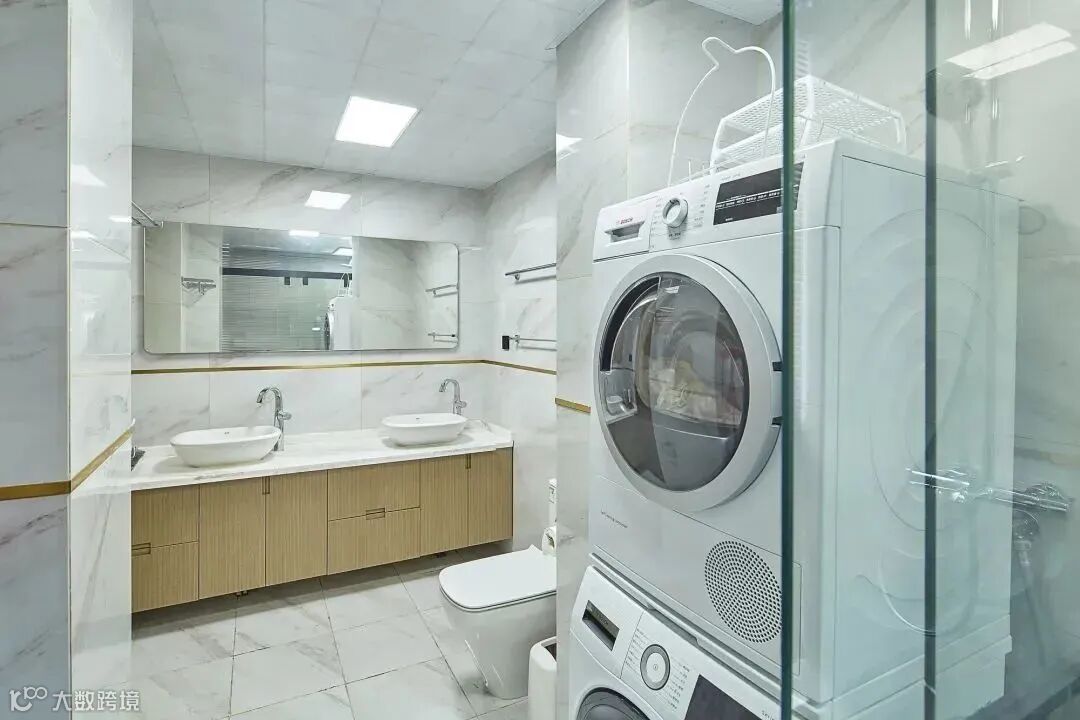 主人卫生间配了一个双人位的洗手盆,整体干净优雅的墙面与地面,为主人提供了一个时尚优雅的卫浴空间感。