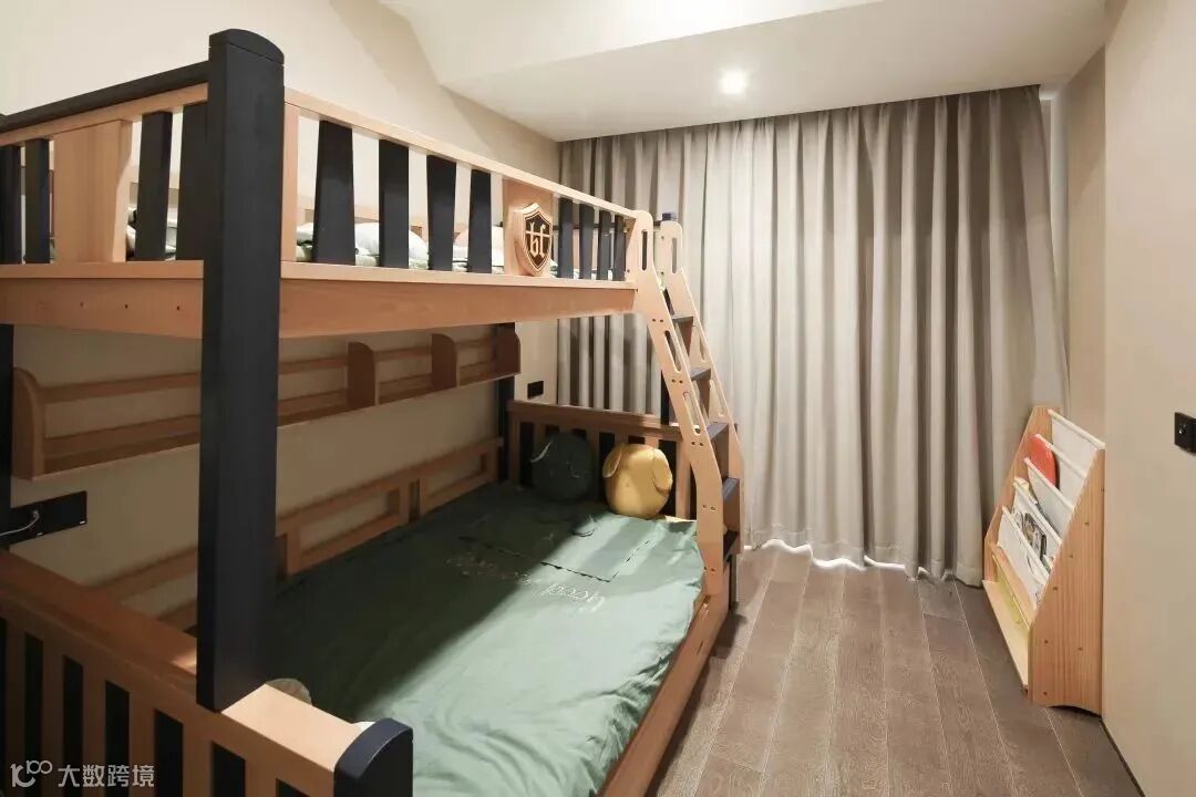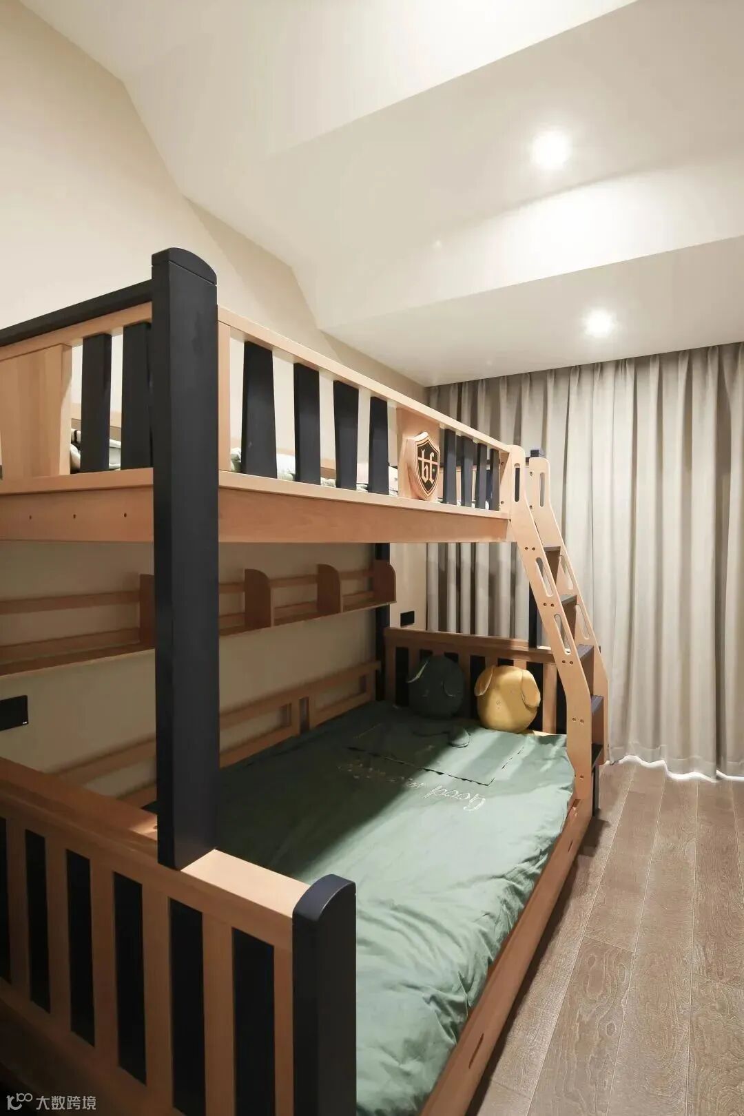 ▲儿童房采取上下床的设计,木质的床架基础,加入黑色的组合,显得更加独特。