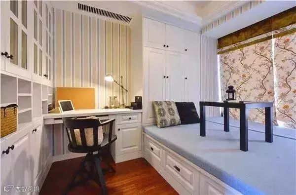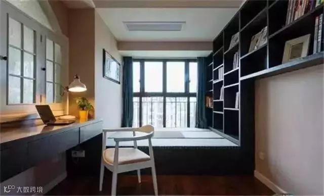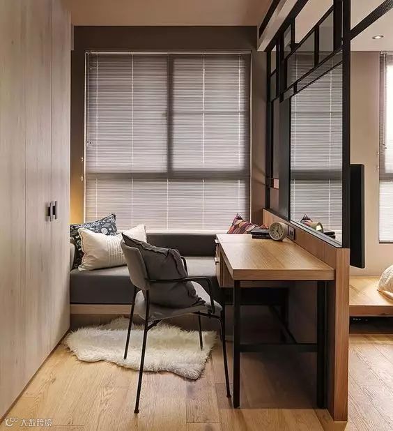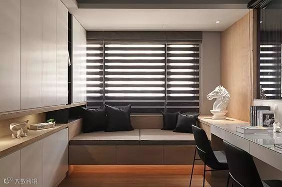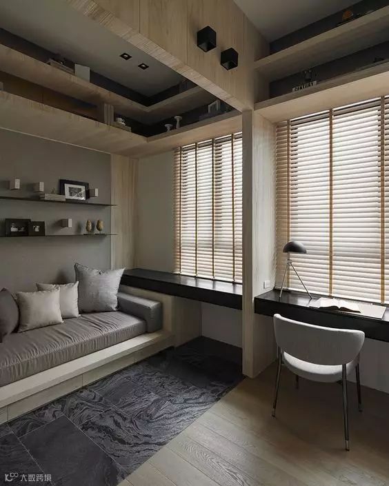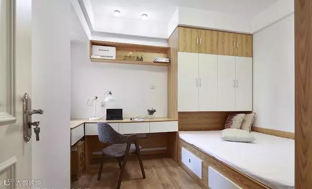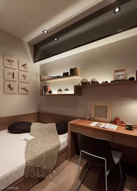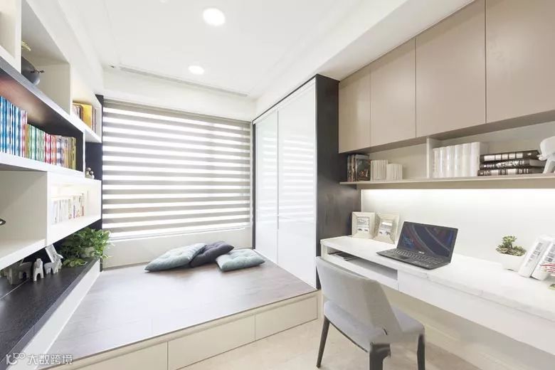 除了传说中的现实很难买到的折叠式或隐藏式家具外,还有一个比较可靠的方案就是“榻榻米+柜+书桌”组合,接下来就直接为大家分享几个案例: