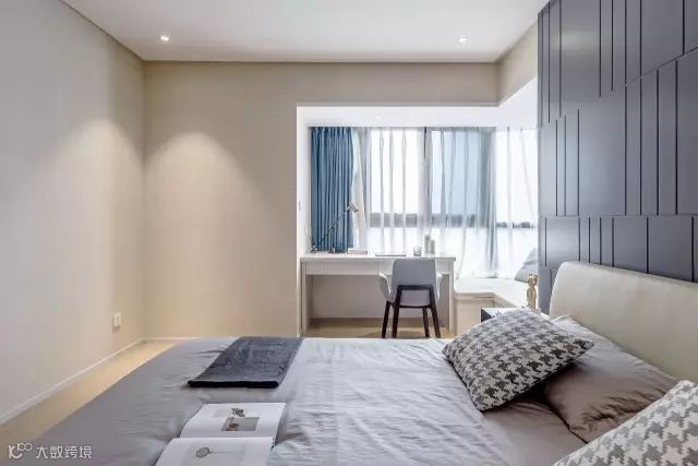如果窗与床之间的距离足够,直接摆上一张书桌,对于工作狂而言,简直就是完美。