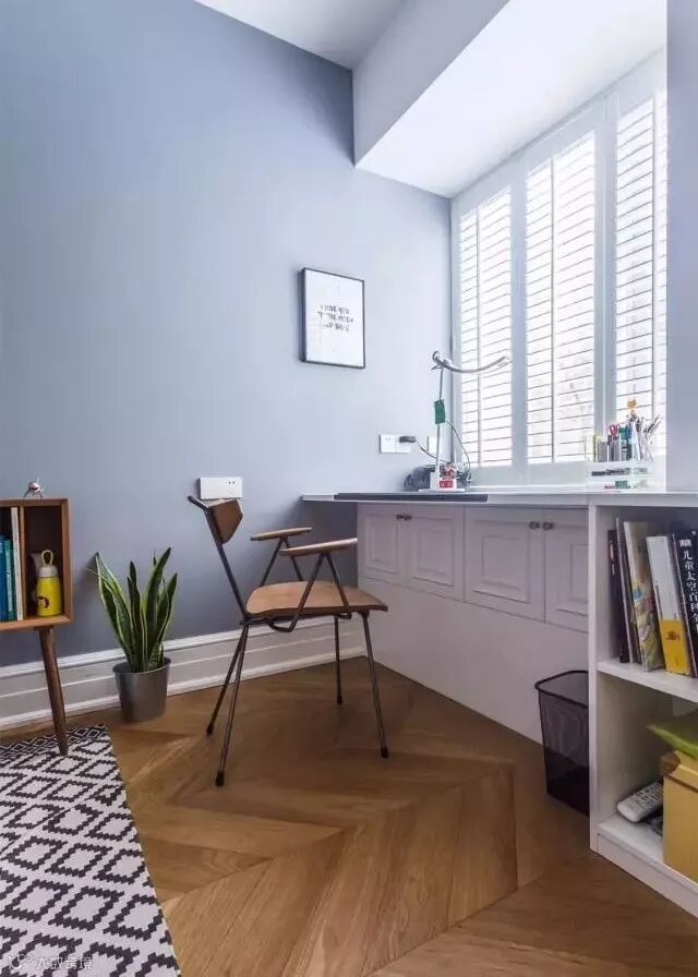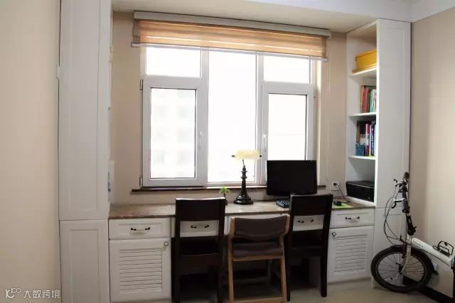 房子的窗户小的话,就把书桌设计成有形状的,比如L型,既美观又节省空间。