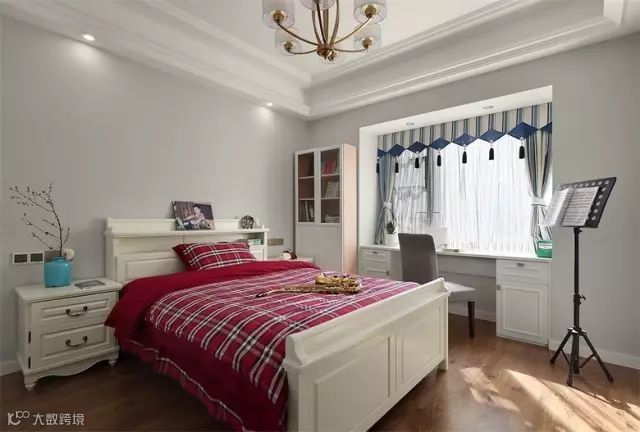 直接大方地在窗边设计张书桌,窗帘使用百叶窗,小清新又有情调。