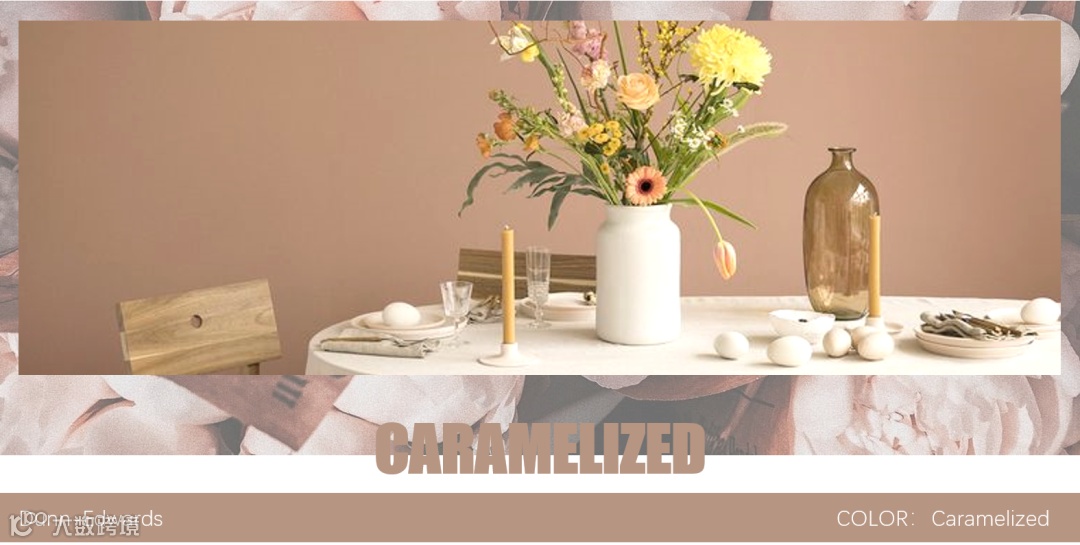 Caramelized 是一款柔和的百搭色彩,足以适应任何设计风格,从复古到现代。可以考虑将 Caramelized 与米白色或奶油色搭配,使房间感觉轻盈通风,或搭配海军蓝或木炭色等较深的颜色,营造出戏剧性的现代感。Caramelized 还可以与浅色木质装饰完美搭配,例如天然木饰或家具。