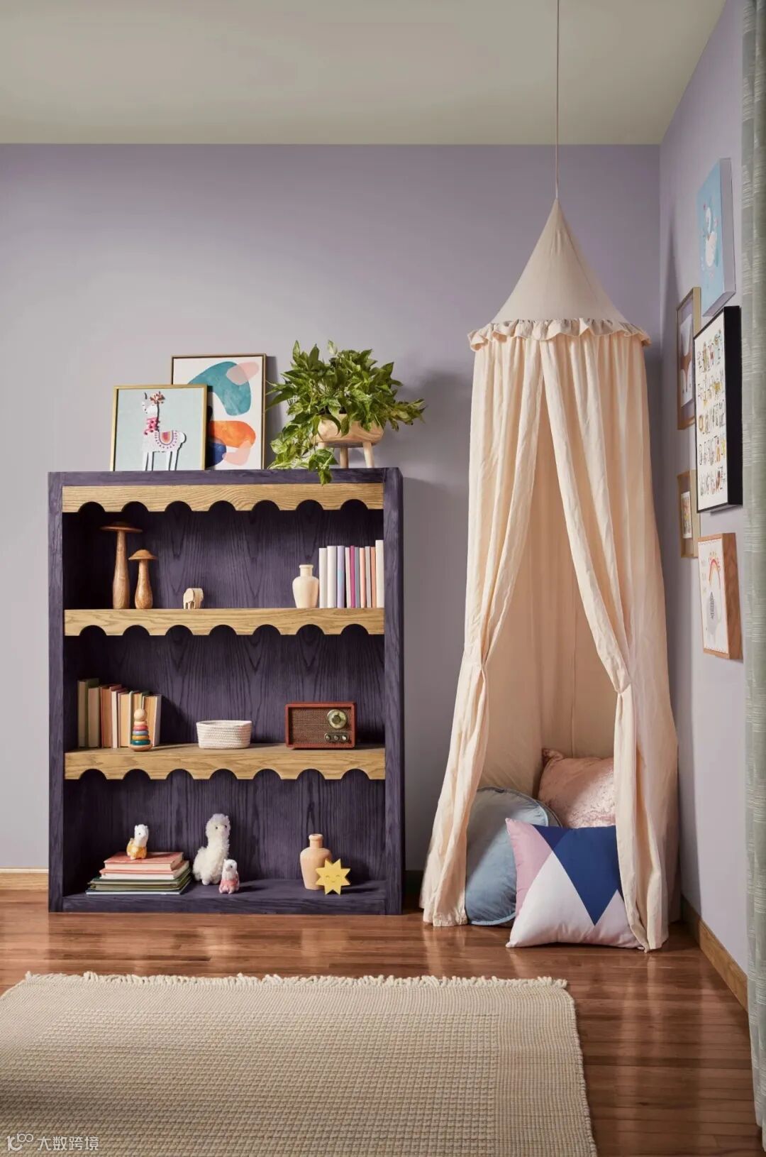 Purple Basil 是一款室内和室外通用的色彩。你可以在前门和百叶窗以及门廊天花板上使用紫色调。在室内,建议将这款色彩用于办公室、浴室和厨柜。为整个空间涂上色彩,打造引人注目的装饰,或与带图案的墙纸形成对比。