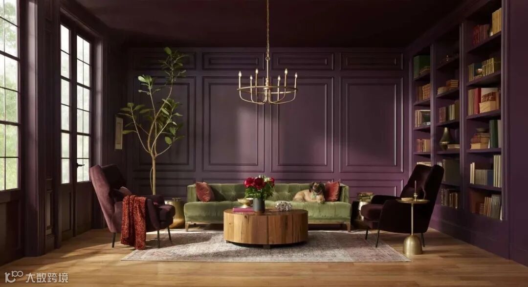 PPG 的 Glidden 为其 2025 年的年度颜色推出了一种令人惊叹的宝石色调—— Purple Basil(紫罗勒)。这种颜色既舒适又温暖,同时又华丽而丰富,对于那些想要深入了解色彩但仍想要安全感的人来说,它是一款完美的油漆。