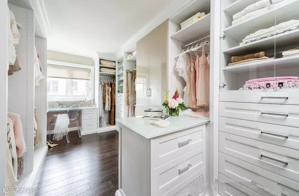 如果家里有一个单独的空房间或空间(比如:储物室),那么完全可以利用起来做一个单独的步入式衣帽间。换季衣物存放、试衣、化妆都可以在这里进行。