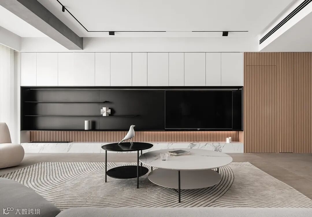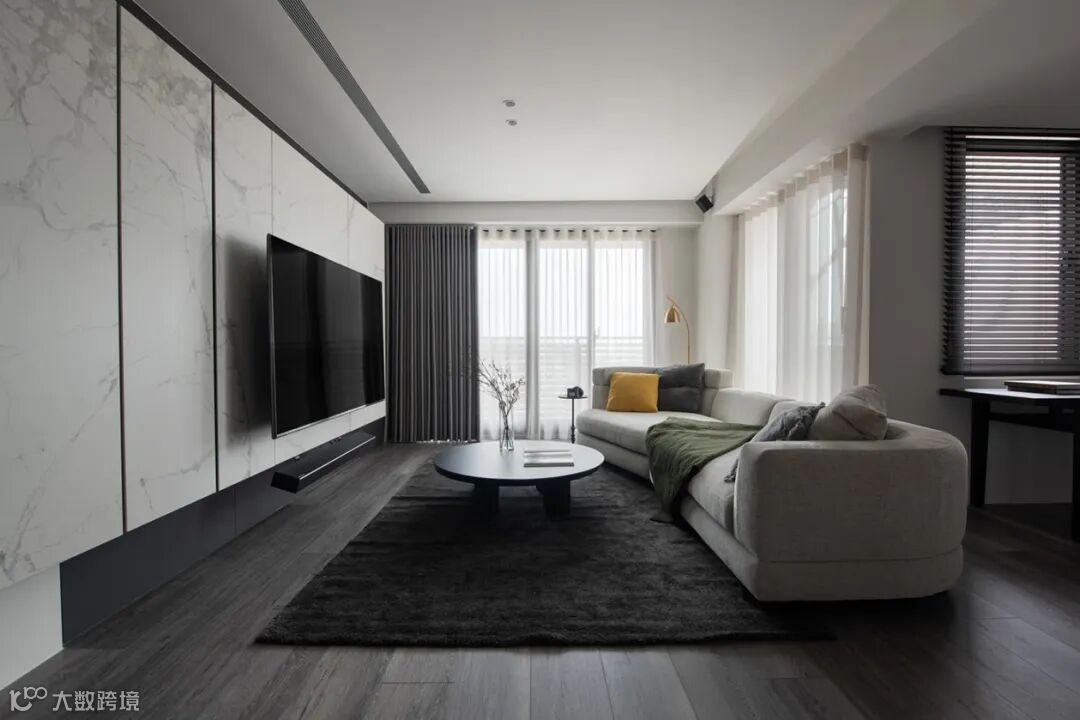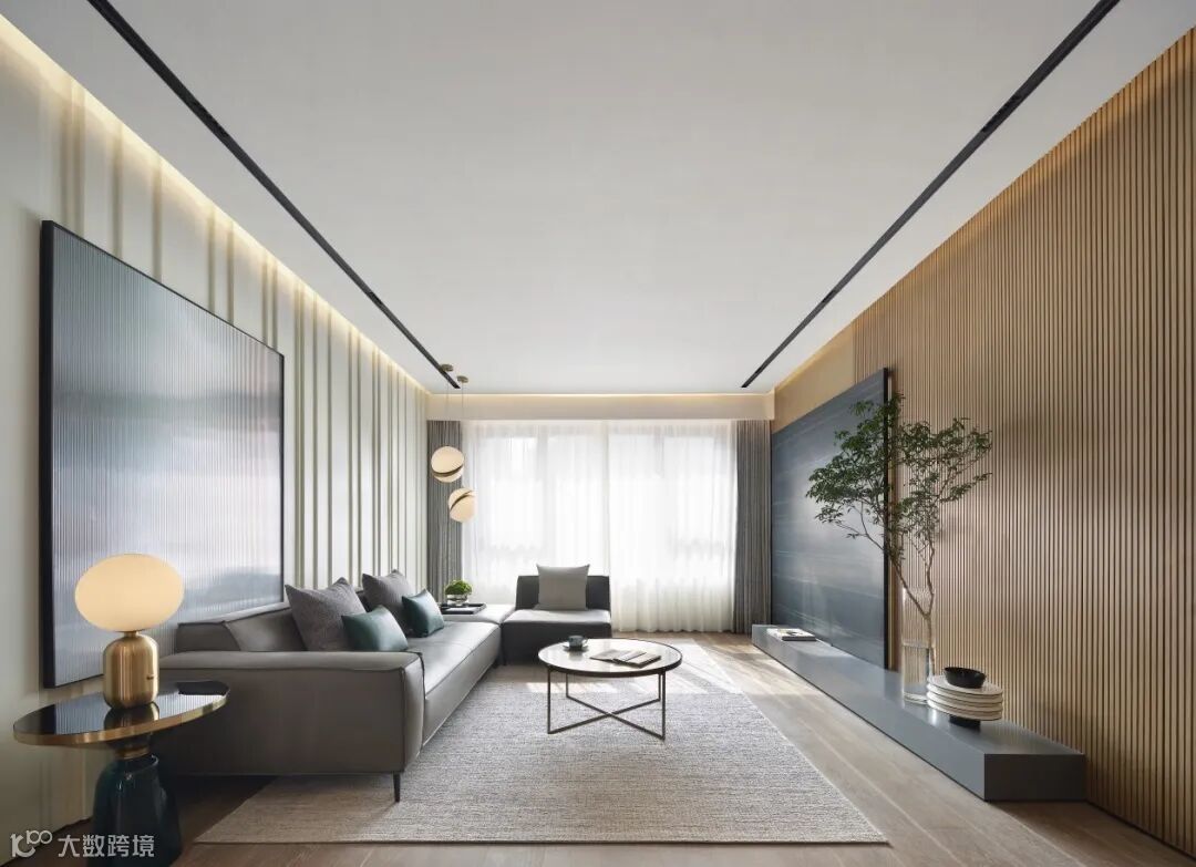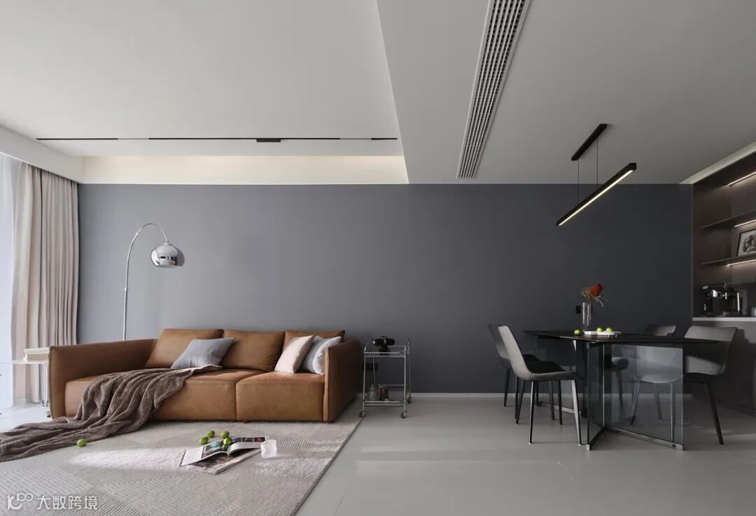 长跨度的背景墙整体性强,如何通过其他方式区分两个空间呢?我们分两种情况来看: