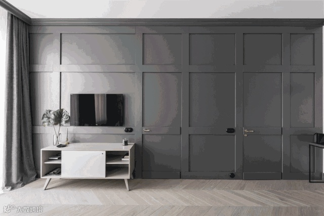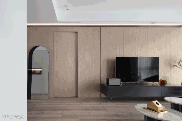 也有不少户型背景墙连带着室内门的,像这种室内门我们可以选择做“隐形门”,提高空间私密性以及美观度。
