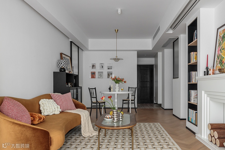 靠墙摆放一个矮柜,当两个空间的小杂物柜使用,甚至可以充当餐边柜功能,非常适合小户型空间。