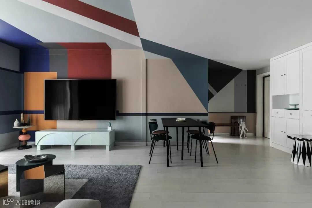 也就是使用乳胶漆将墙面划分多个区块,分别着色。看惯了大白墙,这样的设计是不是耳目一新?(建议颜色不要超过三种,太炫了)
