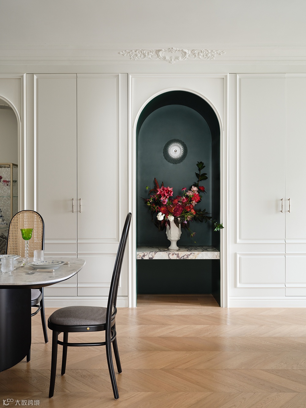 拱形的嵌入式壁龛,也是轻法式风格里的“常客”,只要高度足够,效果自然不会差。