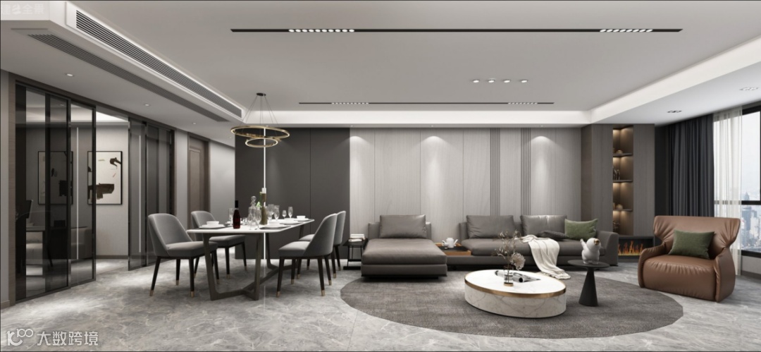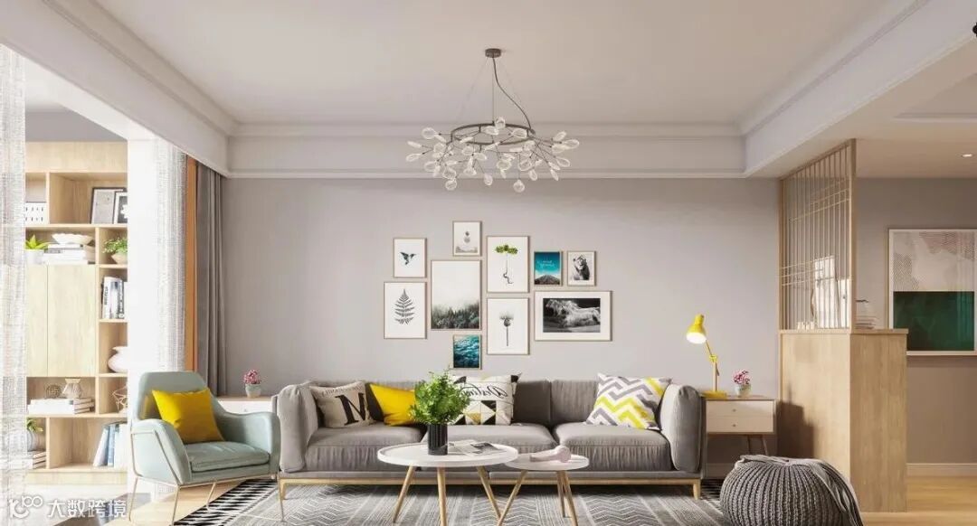 灯光布局对整个空间非常重要,客厅中仅仅用吊灯进行照明,容易造成光照不足、出现阴影、暗区的问题,使空间不够美观。对此,我们可以用主灯+无主灯相结合的设计,安装吊灯的同时在墙四周安装筒灯,柔和光线分散排布,围绕着主灯照明,或明或暗之间,勾勒出独属于客厅的光线美学。