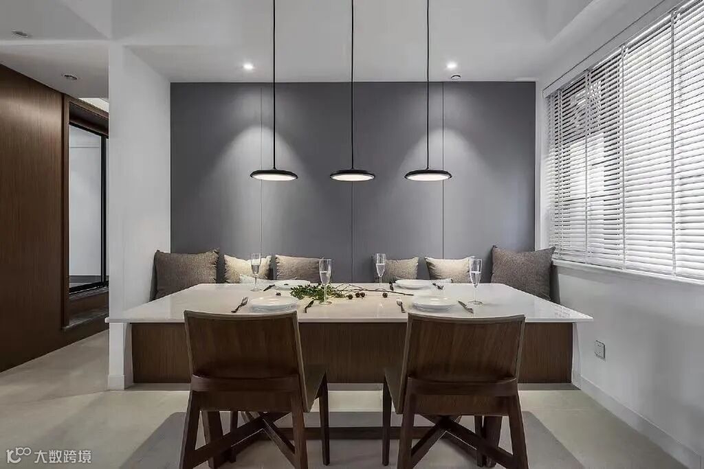 餐厅的灯光布局也是有一定讲究的,如果家中餐厅空间面积比较大,可以组合吊灯+筒灯+壁灯相结合的方式,这样的组合能为餐厅提供充足的照明。如果面积较小可以在餐桌的上方安装吊灯,吊灯可以是三盏灯组合的形式或单盏形式,提供照明的同时,也能起到很好的装饰效果。