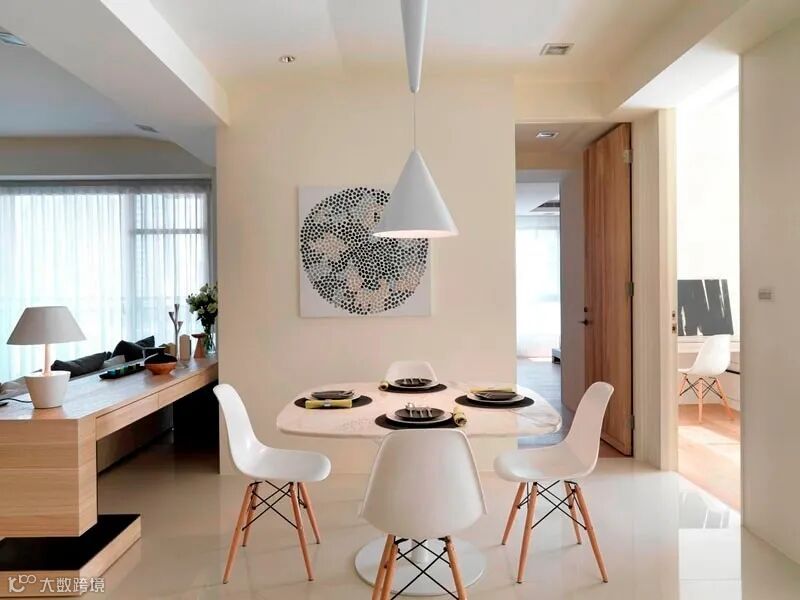 餐桌如果是长方形的,最好选择多个吊灯组合而成的款式,若是正方形或圆形餐桌选择单盏吊灯就足够了。