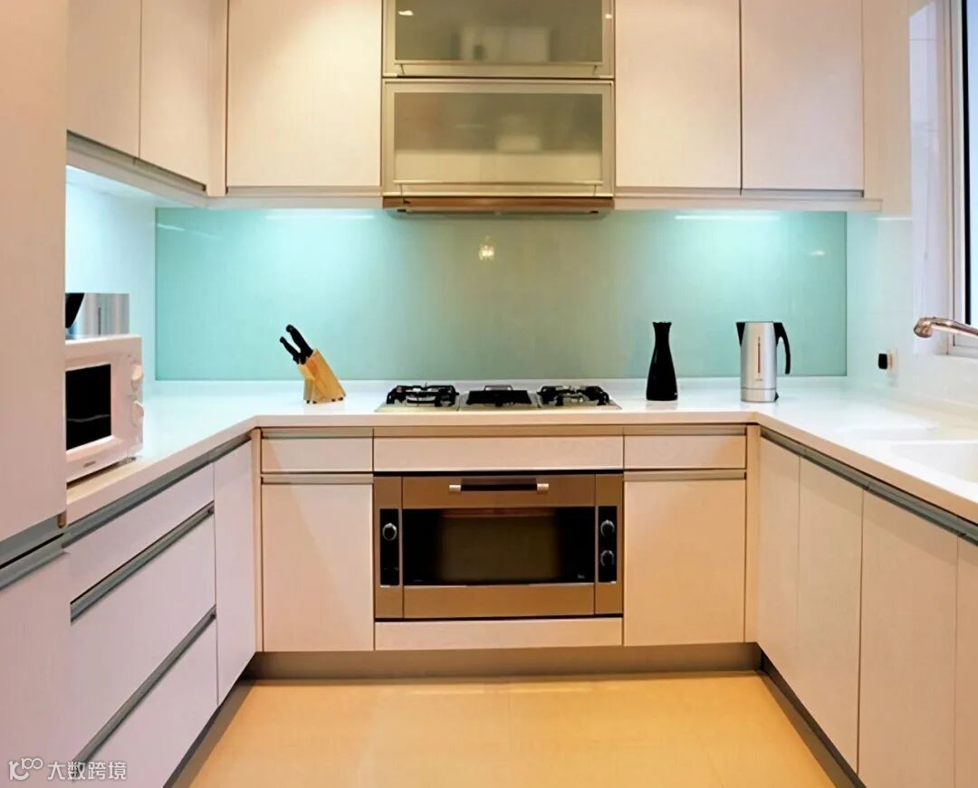 ②橱柜选嵌入式的,将烤箱、微波炉等电器嵌入其中,让厨房整体看上去更干净整洁。