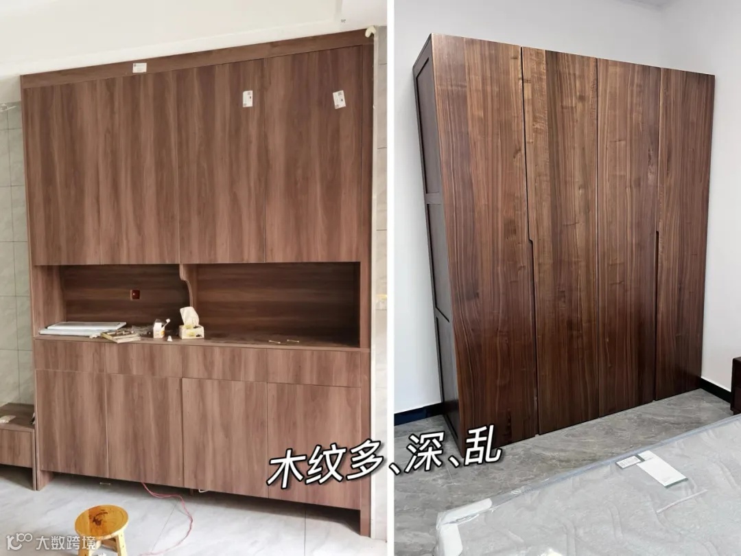 木纹元素在家居空间中应用广泛,但粗犷的木纹却不易搭配。大木纹不仅显得杂乱,还会拉低原木应有的档次,让原本高档的柜子变得土气十足。