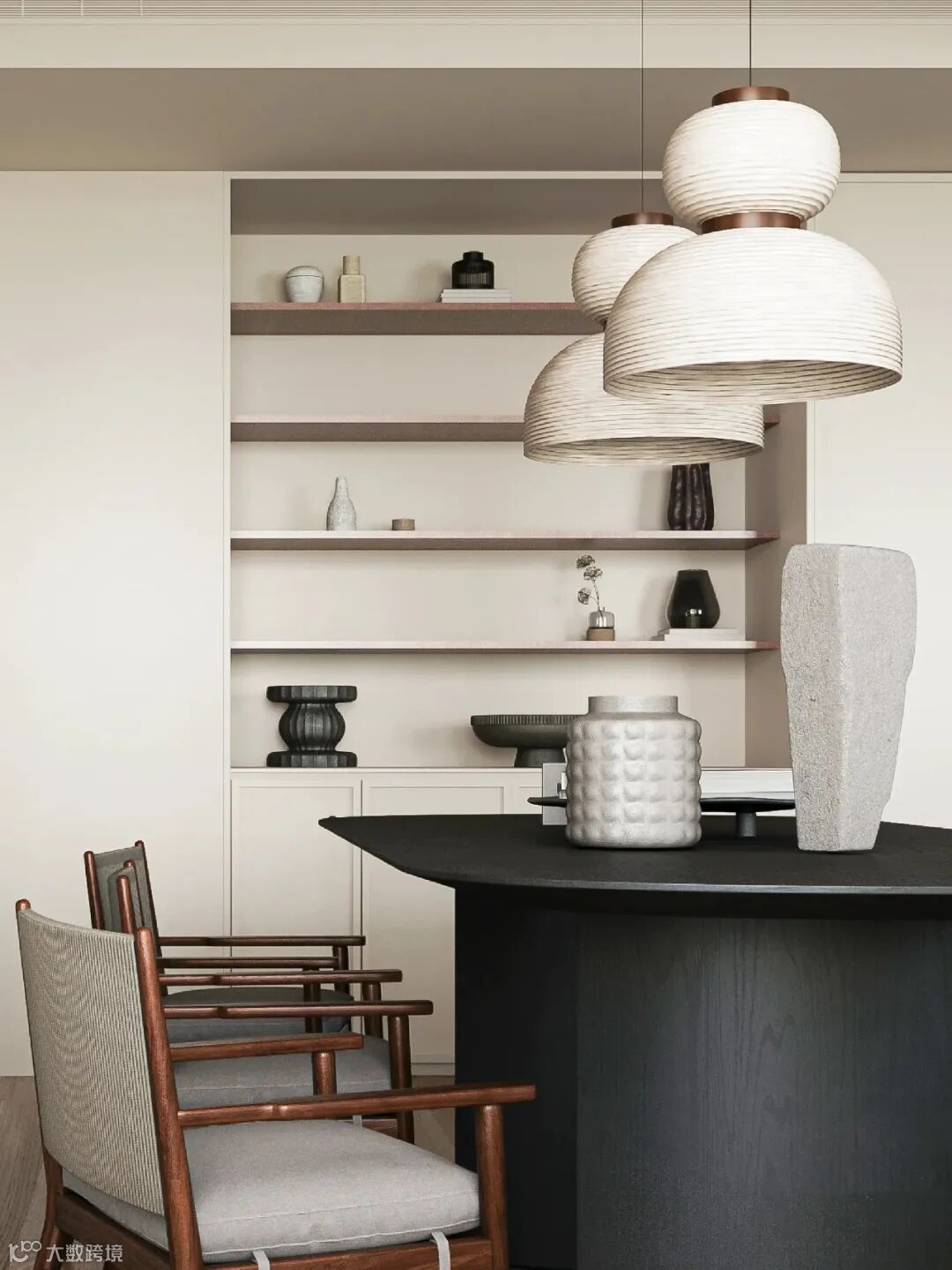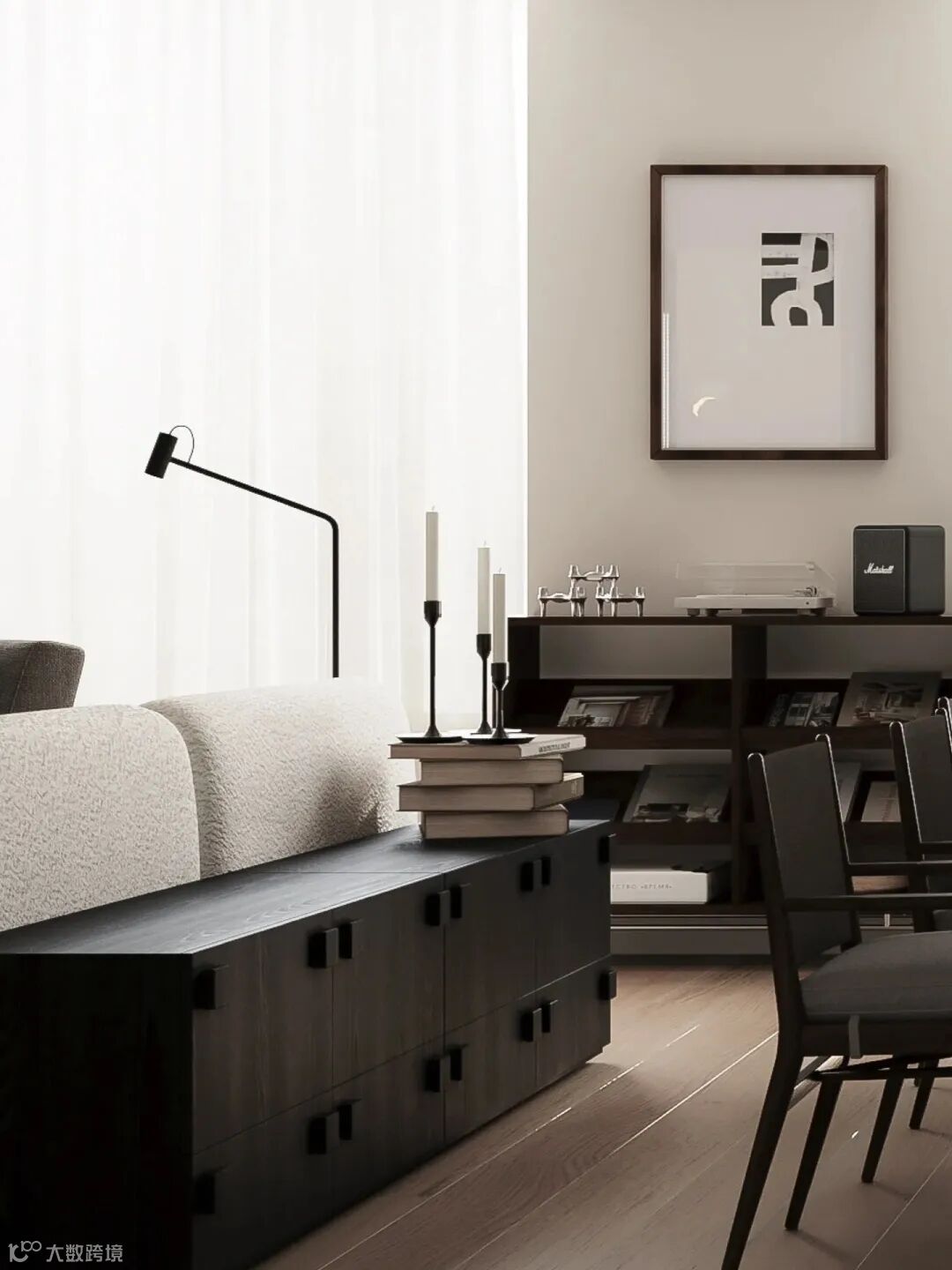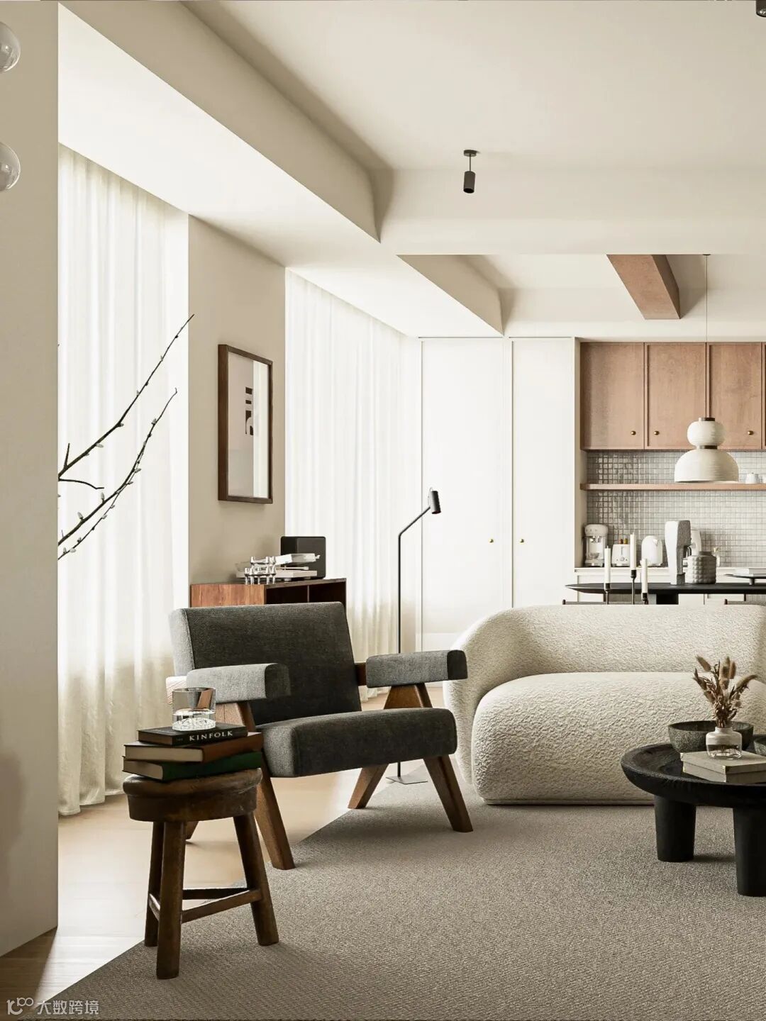 中古风的韵味 & 极简的克制,两种风格相互融合,形成了这个迷人独特的空间,经久耐看,无法自拔。