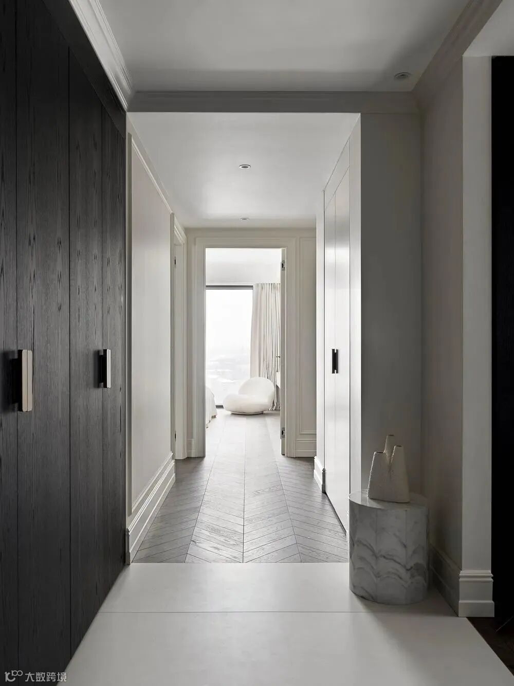空间极致古典又不失惊艳的韵味。白色的基调,灰色的地面以及意大利经典家具,构成和谐而高级的室内。