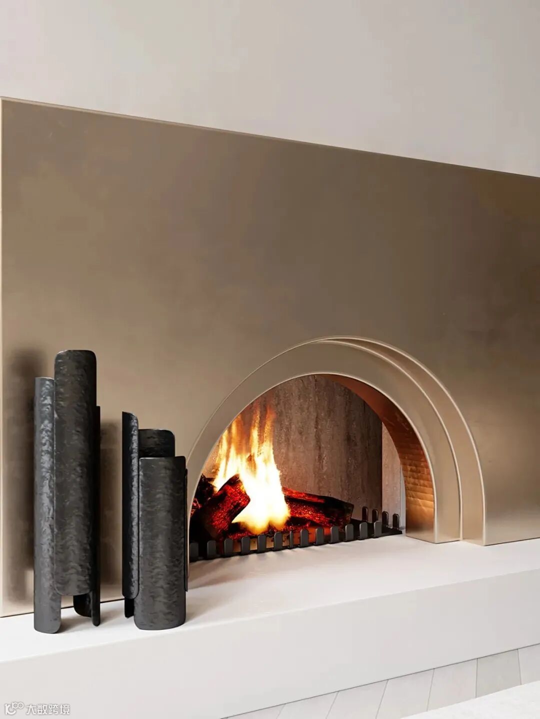 别墅的一层完全是给客人的区域,在黄铜壁炉旁边是柔软的,带有舒适的装饰。