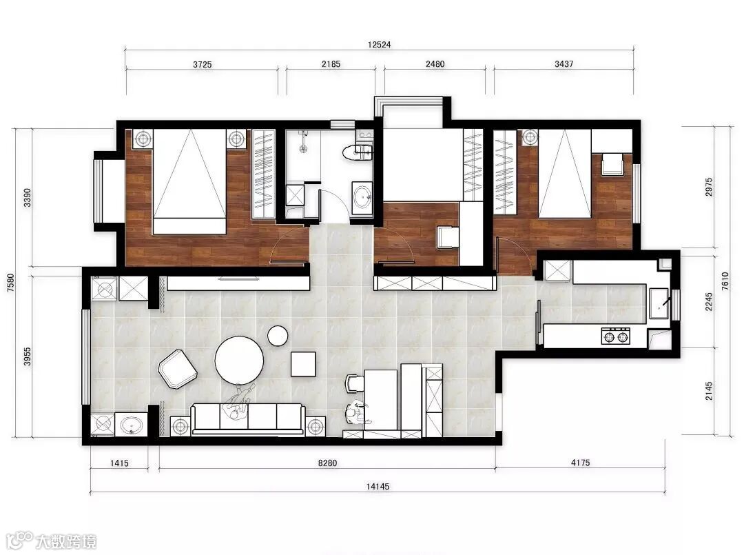 今天分享的是一套建筑面积102平米的现代轻奢风三居室案例。
