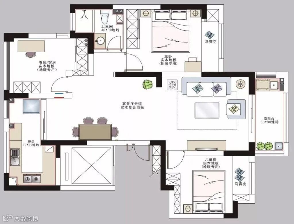 ●不要电视,或者用沙发做隔断,后面可以考虑布置餐桌或书房、西厨等等