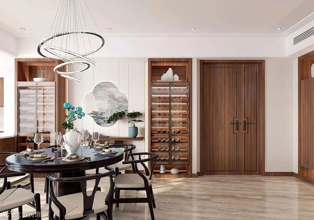 新中式木门设计,并非完全意义上的复古明清,而是从中国明清艺术汲取设计灵感,以人文艺术为原点,呈现亦古亦新的设计之美,将传统与现代完美融合。大多采用实木型对材料,满足整体实用的功能性,如镂空的屏风设计,既体现其视觉上的美感,又具有实用性。