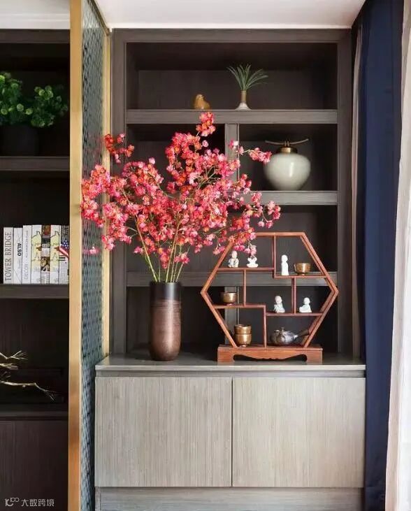 在柜子的上部或下部单独坐一块敞开的区域也是不错的。