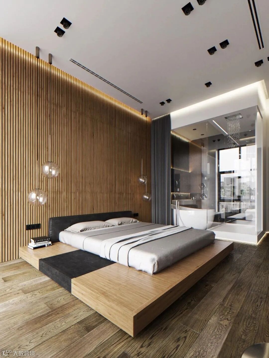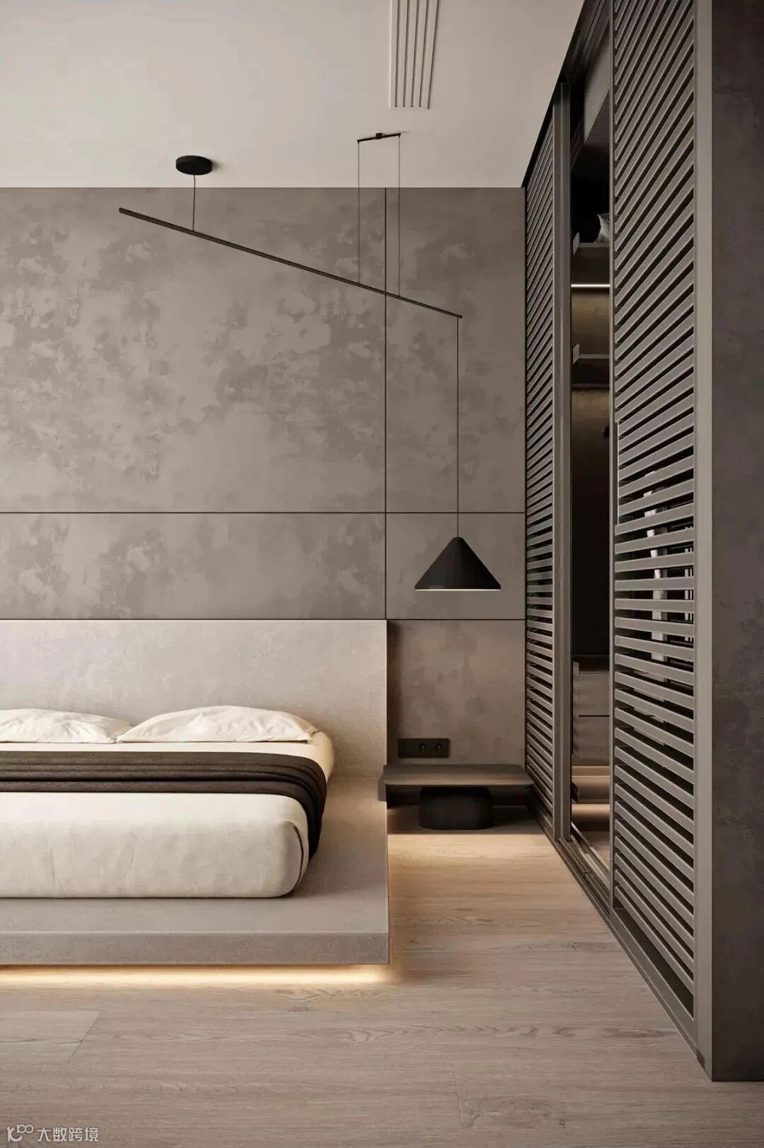 矮床搭配一体化床头柜,能缔造出干练简洁的视觉效果。