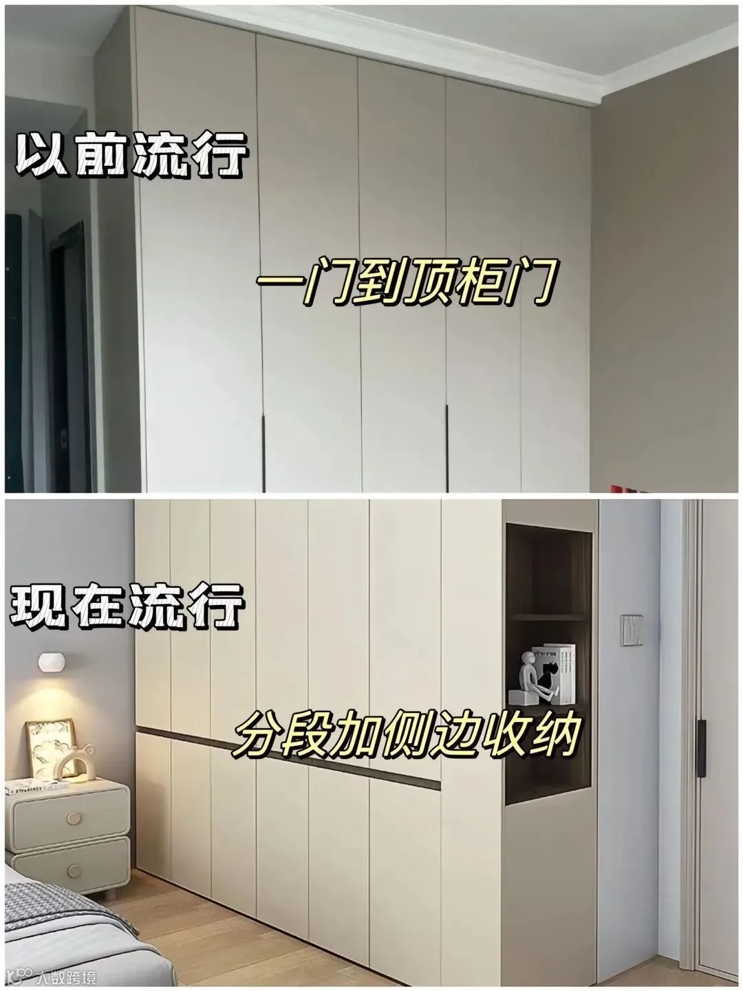 过去,一门到顶的柜门设计是收纳的主流选择,但如今,分段加侧边收纳已经取而代之。这种设计不仅能更好地组织物品,让空间看起来更加整洁和开阔,还能根据不同需求灵活调整。通过使用抽屉、壁架和储物盒,您可以轻松找到所需之物,让居家空间更加便利。