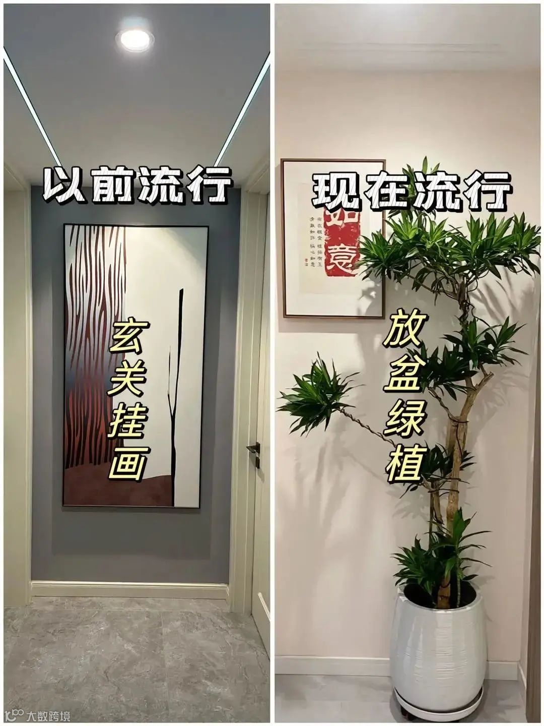 以前,人们习惯在玄关挂画来增加空间的艺术感,但现在,更多人倾向于在玄关摆放盆栽绿植。绿植不仅能净化空气,还为玄关注入生气。选择一些易养护的室内植物,如仙人掌或多肉植物,将玄关变成一个迎宾的绿洲!让您的家更加充满自然气息。